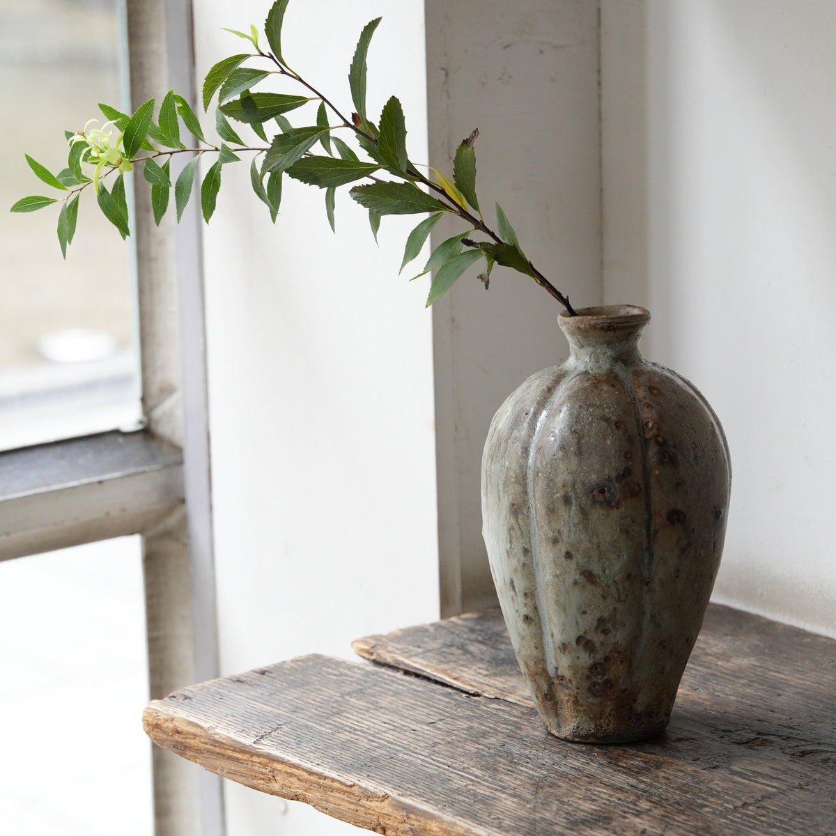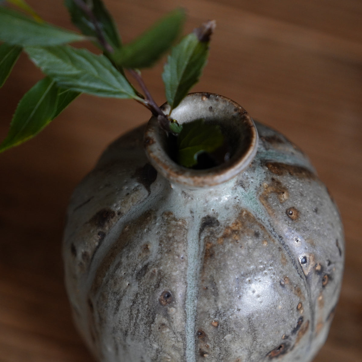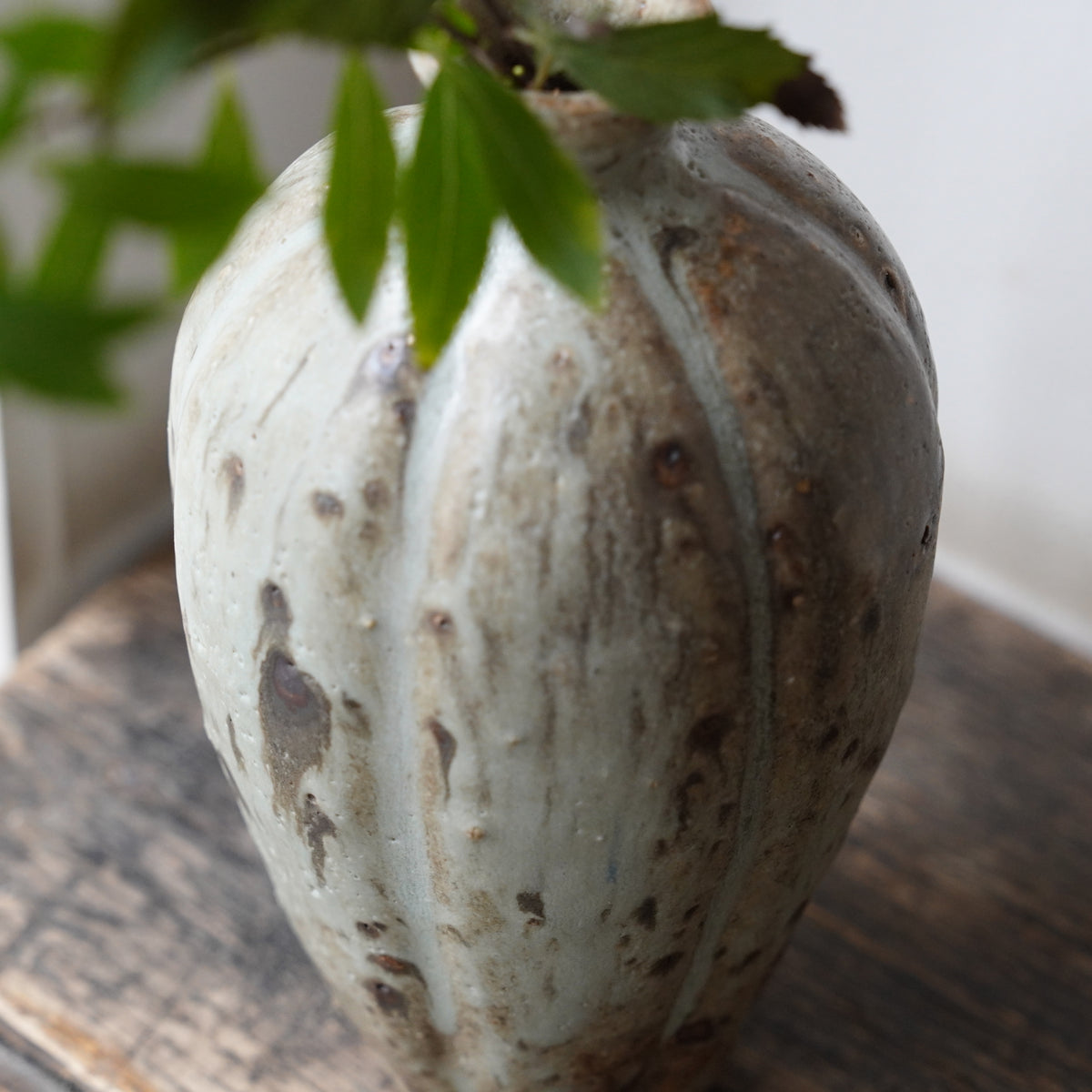 土の力強さを感じる瓜型の花器。