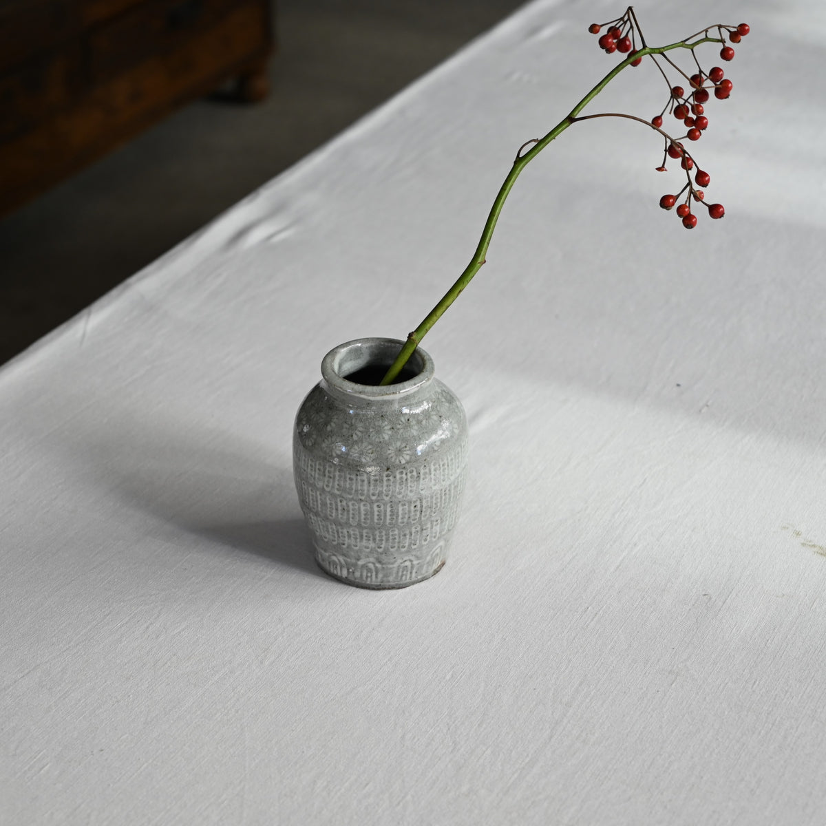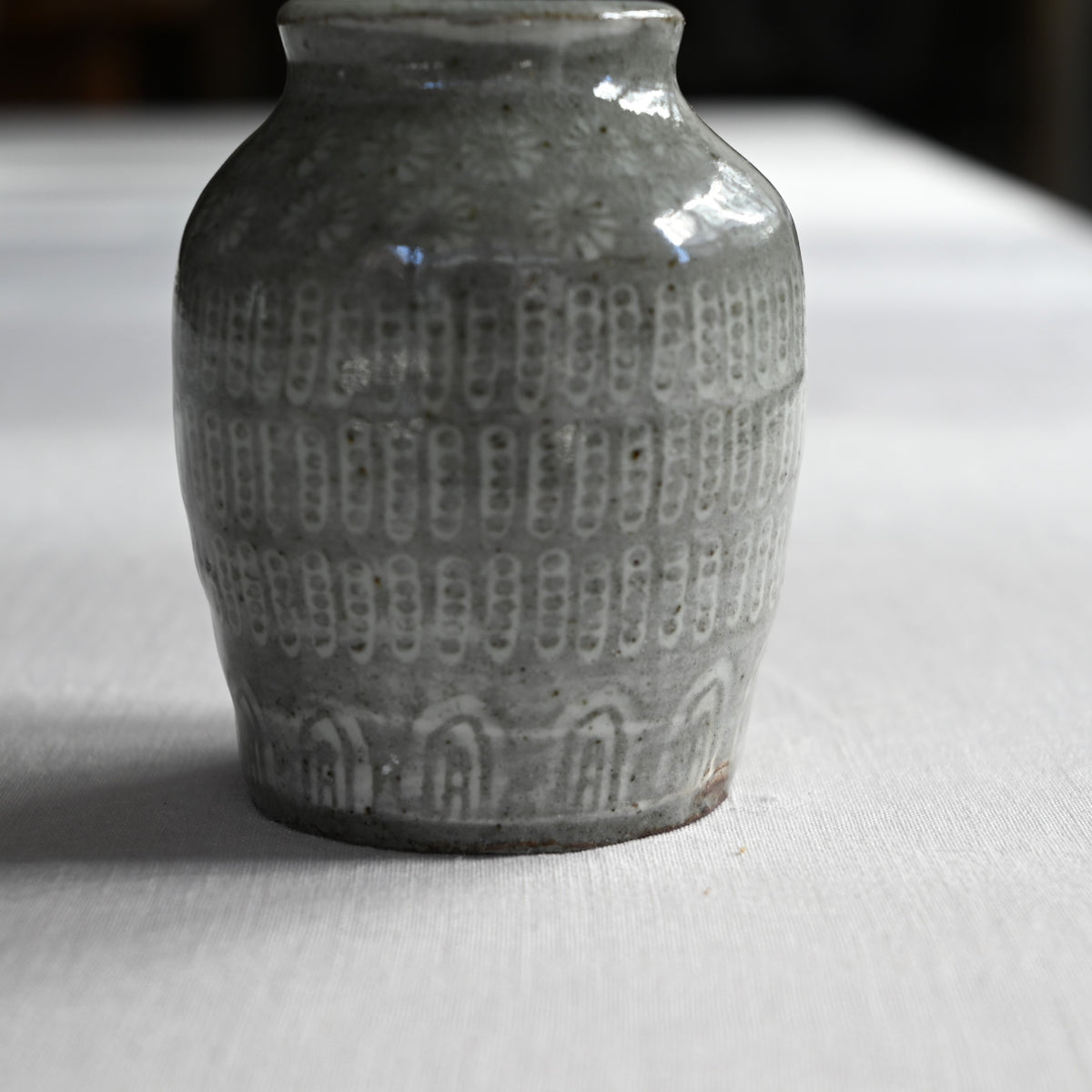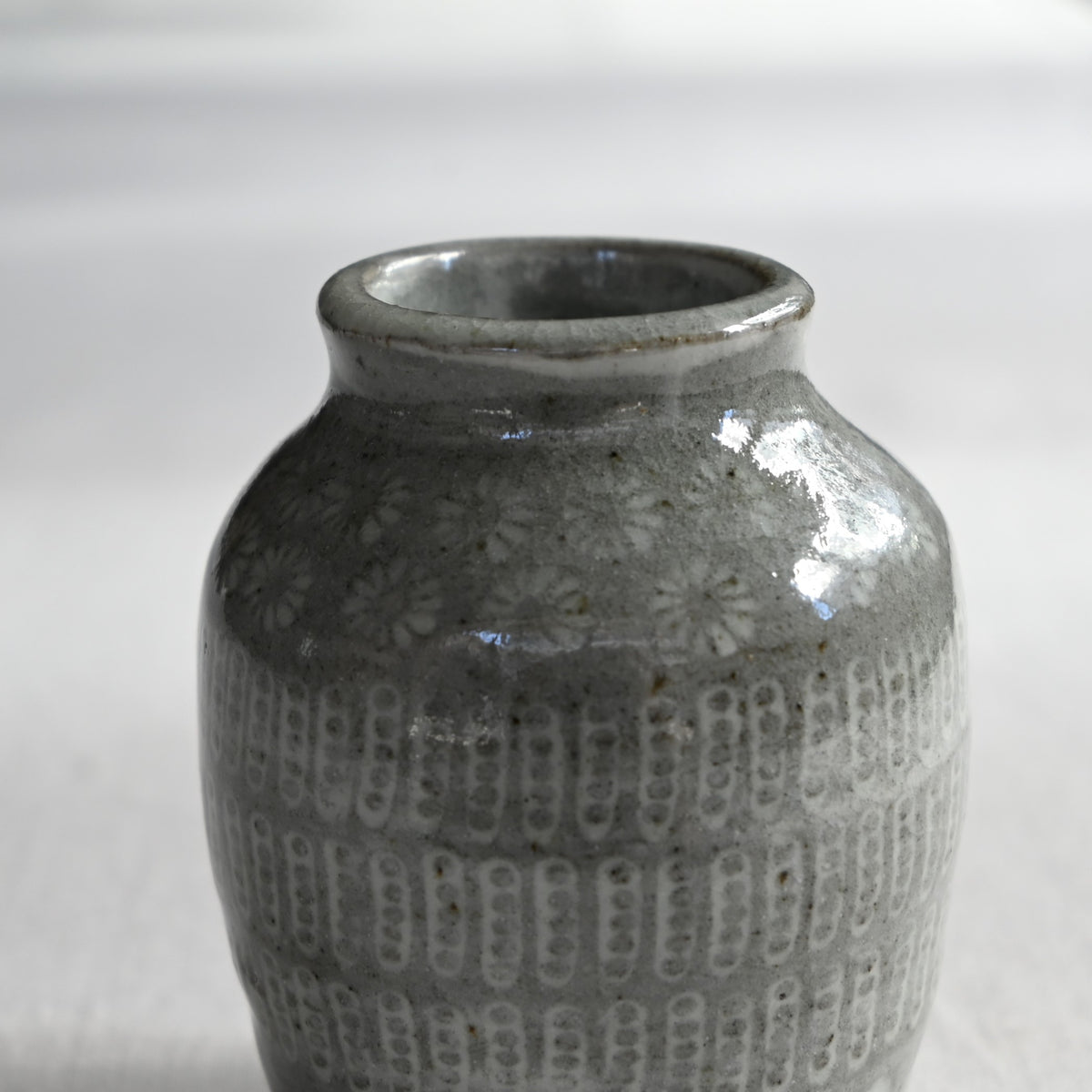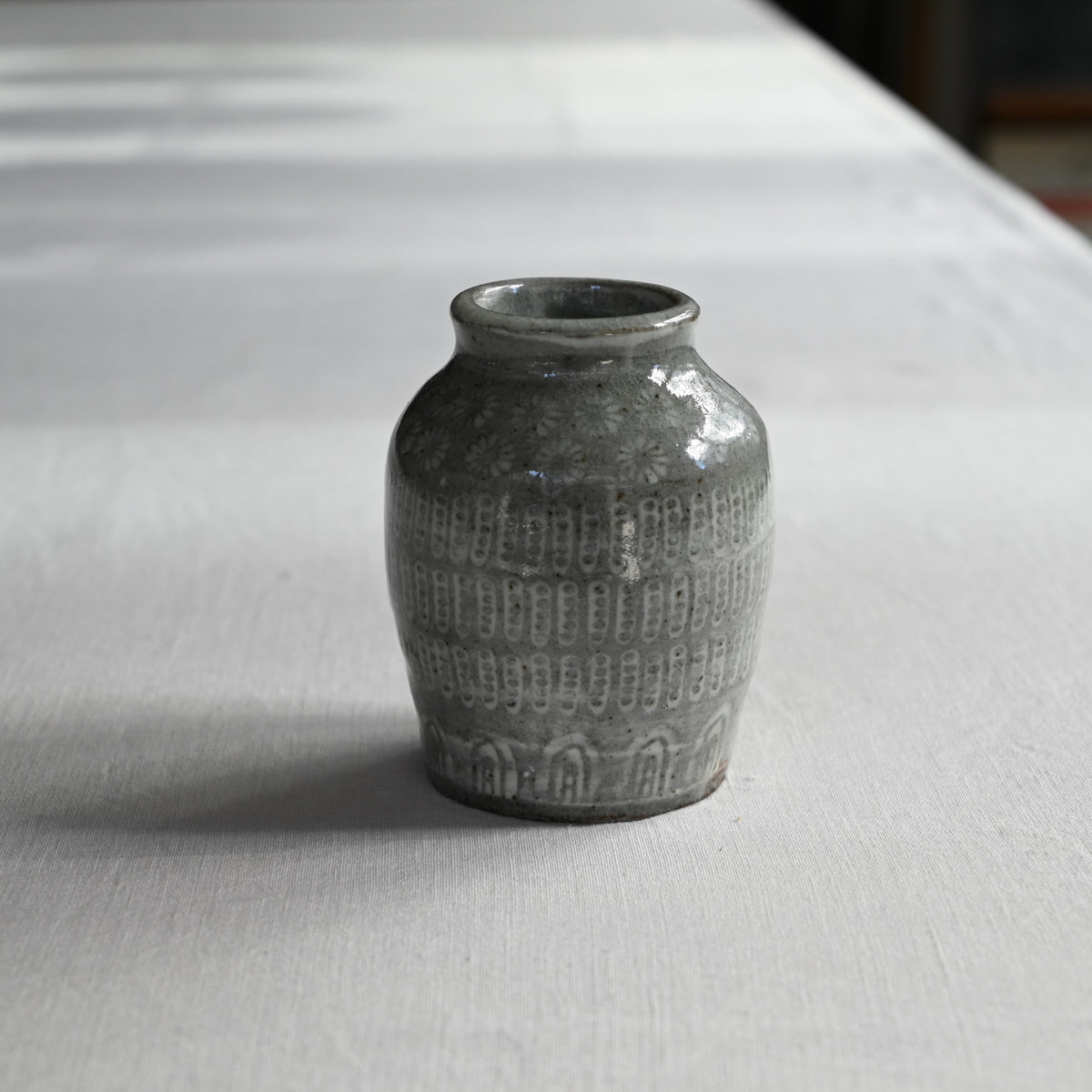 三島模様を施された花入れ。