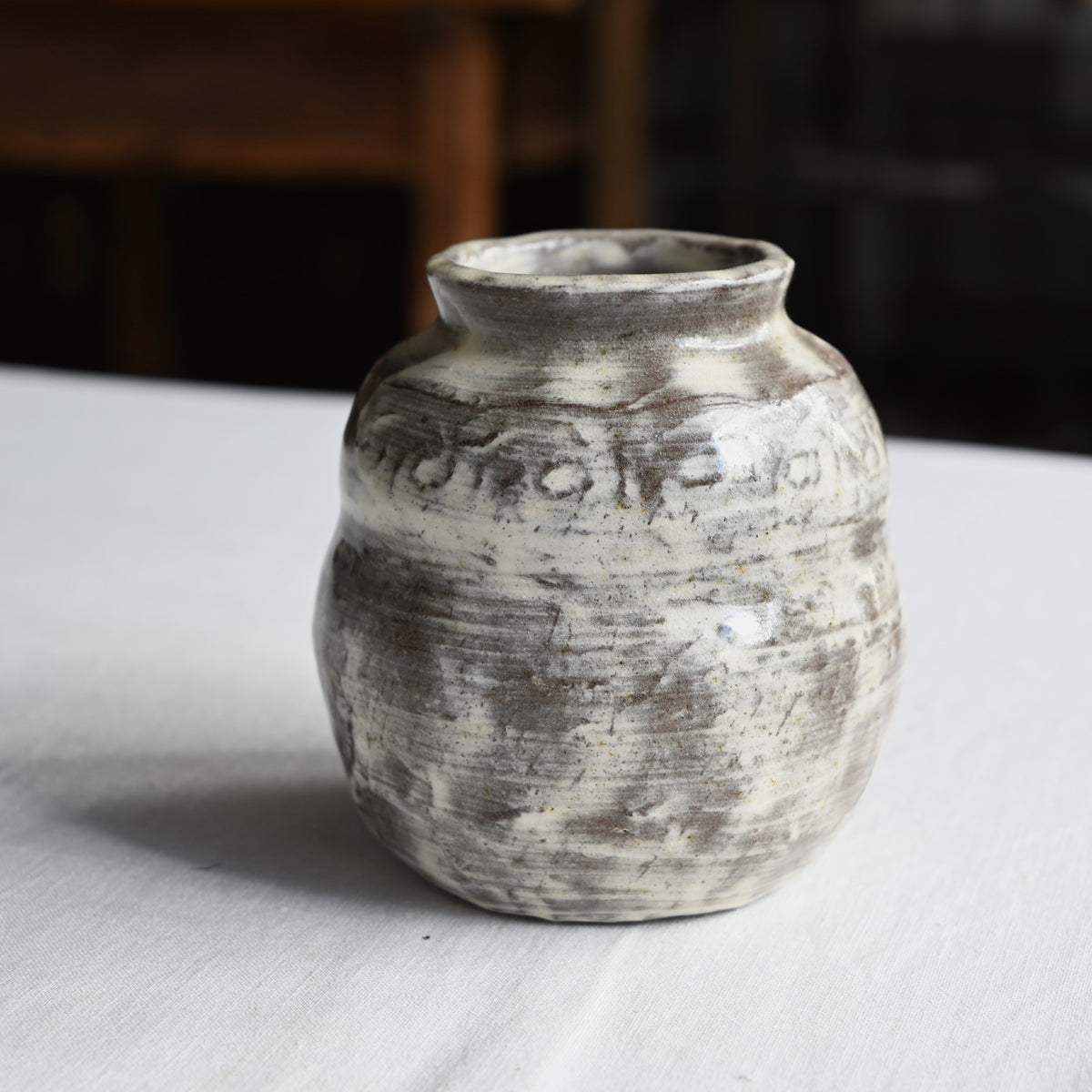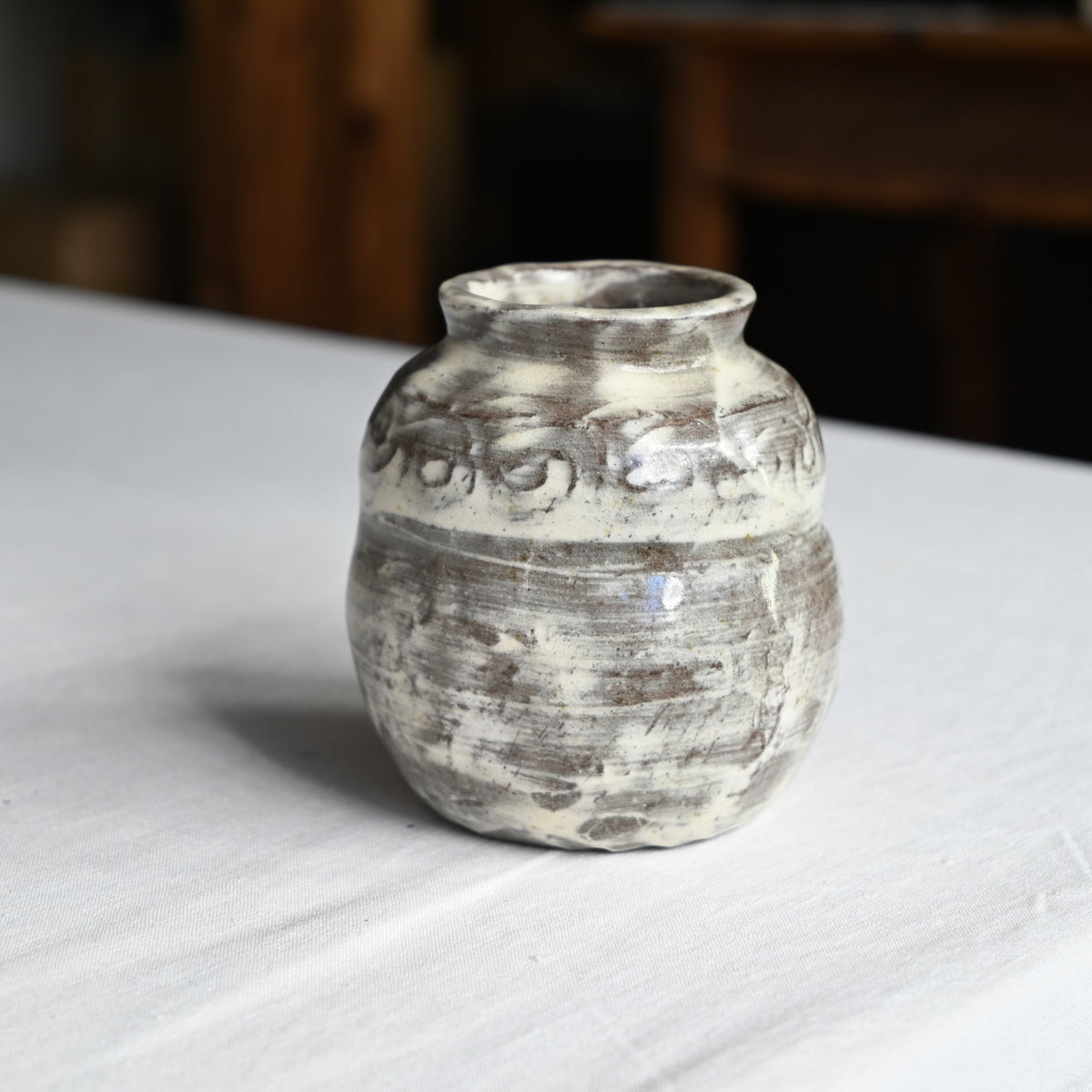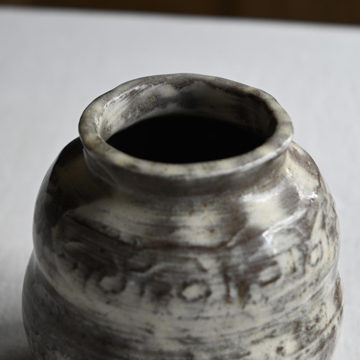 刷毛模様の力強さと土味を感じる小ぶりな花入れ。