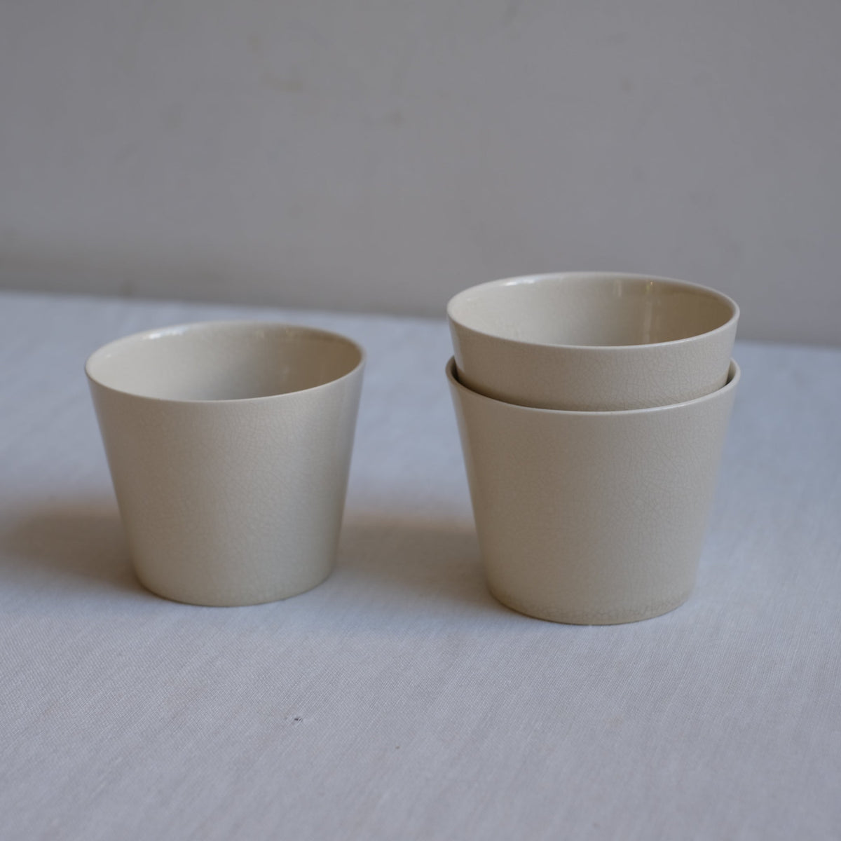 岐阜県多治見市にて制作されている石黒さん。しっかり入った貫入はどこか懐かしく落ち着いた表情。青瓷や白瓷のやわらかであたたかみのある雰囲気をお楽しみください。