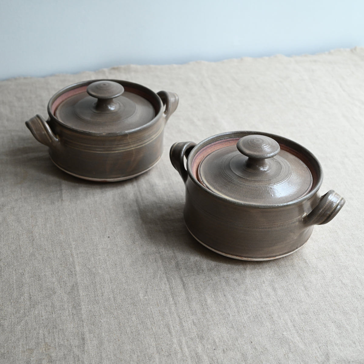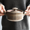どっしりとして大らかな器を作る松原さん。常滑時代は粉引を中心とした作風で、現在はさまざまな手法にもチャレンジされています。スリップの技法で作られた器も、ゆったりとした大らかさが感じられます。耐火の器はお料理の幅も広げてくれます。