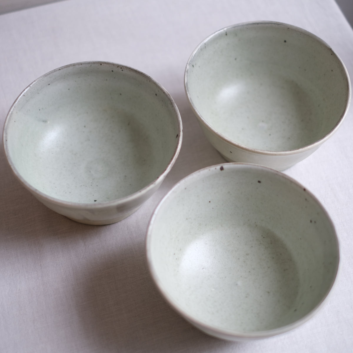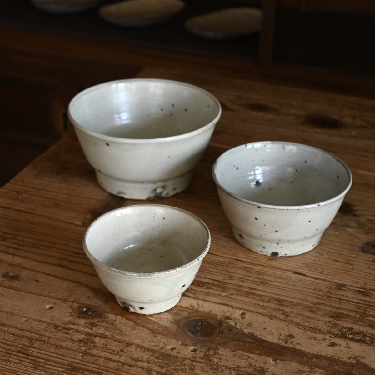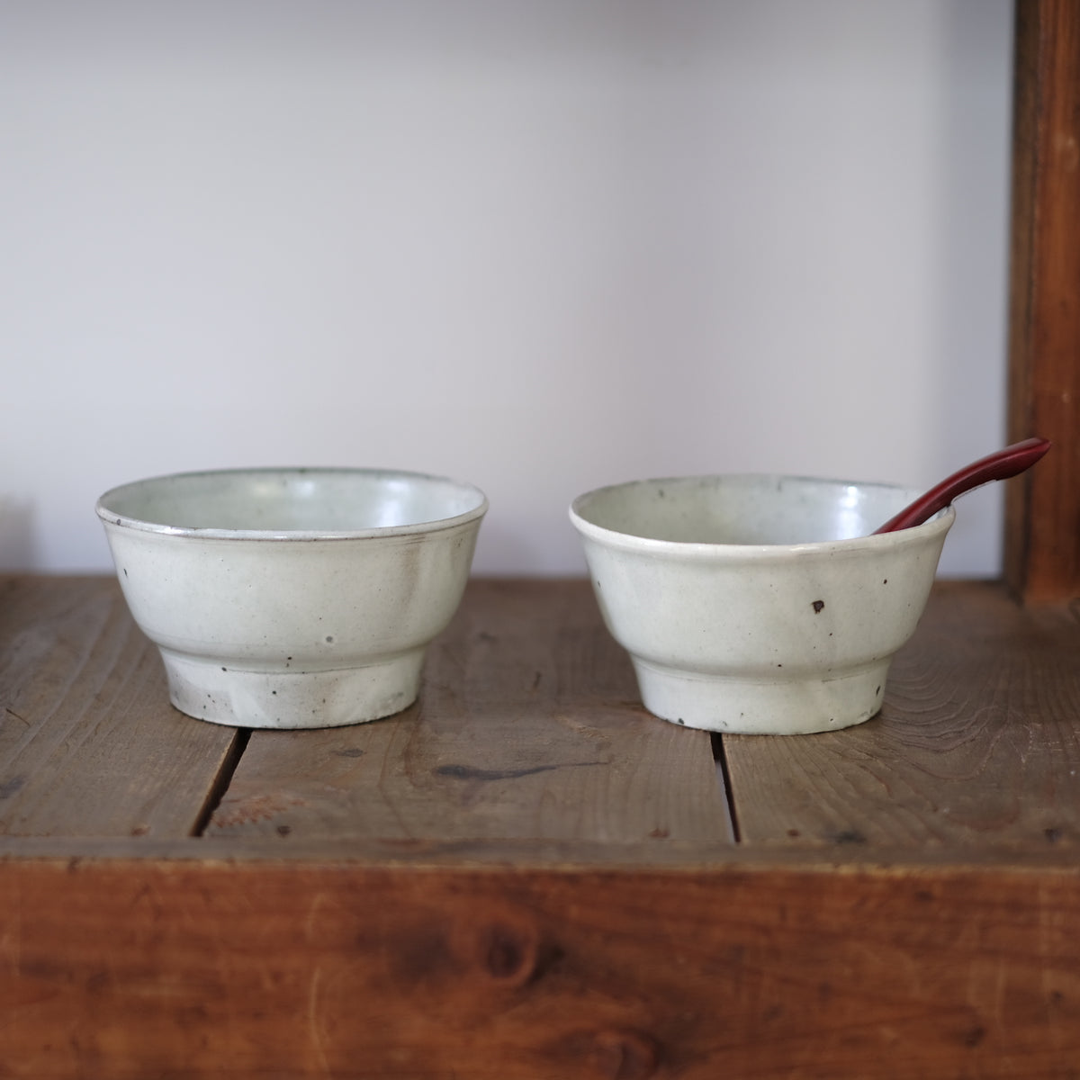 どっしりとして大らかな器を作る松原さん。常滑時代は粉引を中心とした作風で、現在はさまざまな手法にもチャレンジされています。スリップの技法で作られた器も、ゆったりとした大らかさが感じられます。耐火の器はお料理の幅も広げてくれます。