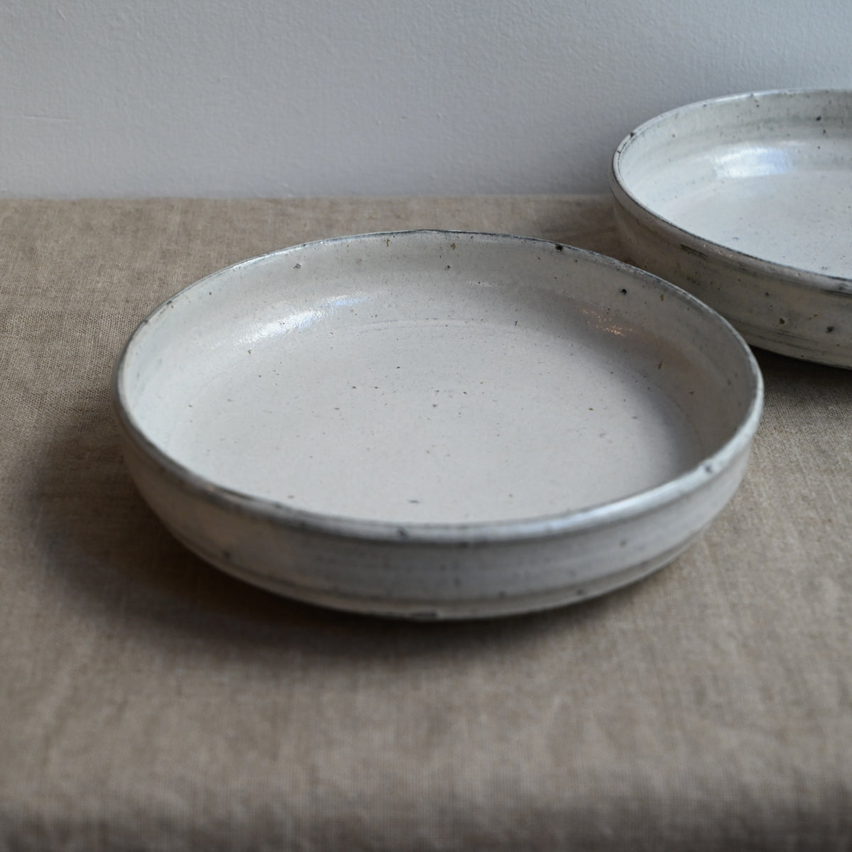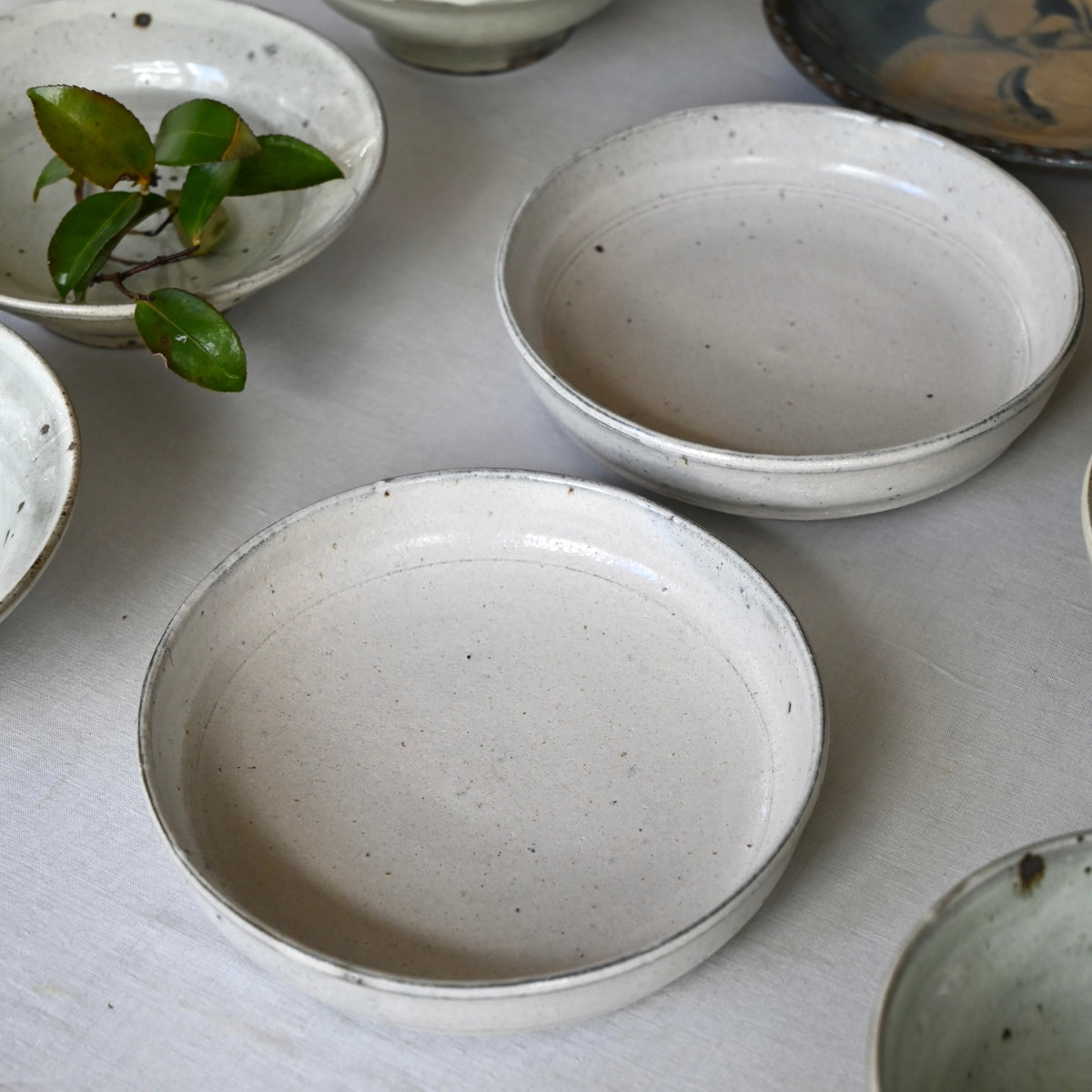 どっしりとして大らかな器を作る松原さん。常滑時代は粉引を中心とした作風で、現在はさまざまな手法にもチャレンジされています。スリップの技法で作られた器も、ゆったりとした大らかさが感じられます。耐火の器はお料理の幅も広げてくれます。