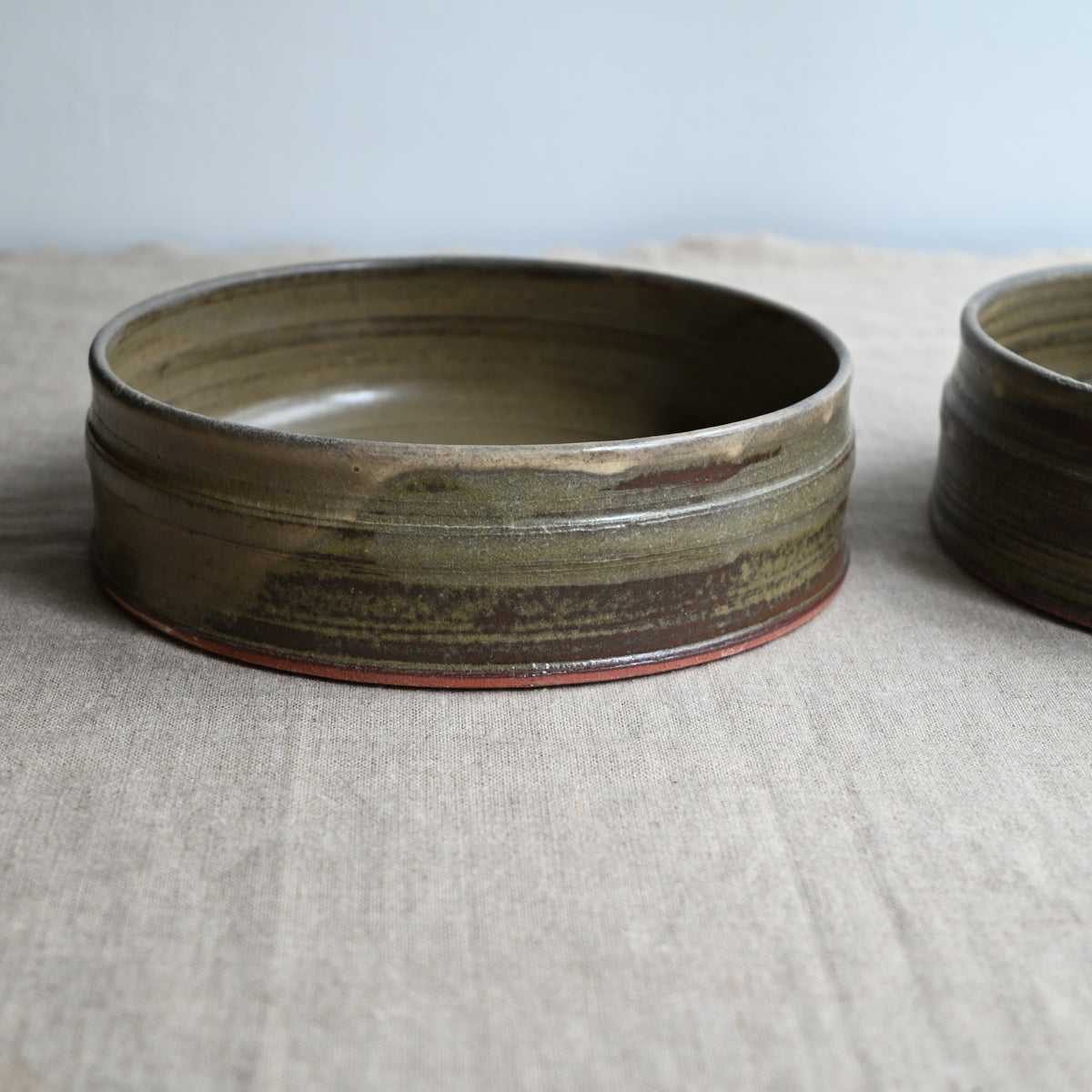 どっしりとして大らかな器を作る松原さん。常滑時代は粉引を中心とした作風で、現在はさまざまな手法にもチャレンジされています。スリップの技法で作られた器も、ゆったりとした大らかさが感じられます。耐火の器はお料理の幅も広げてくれます。