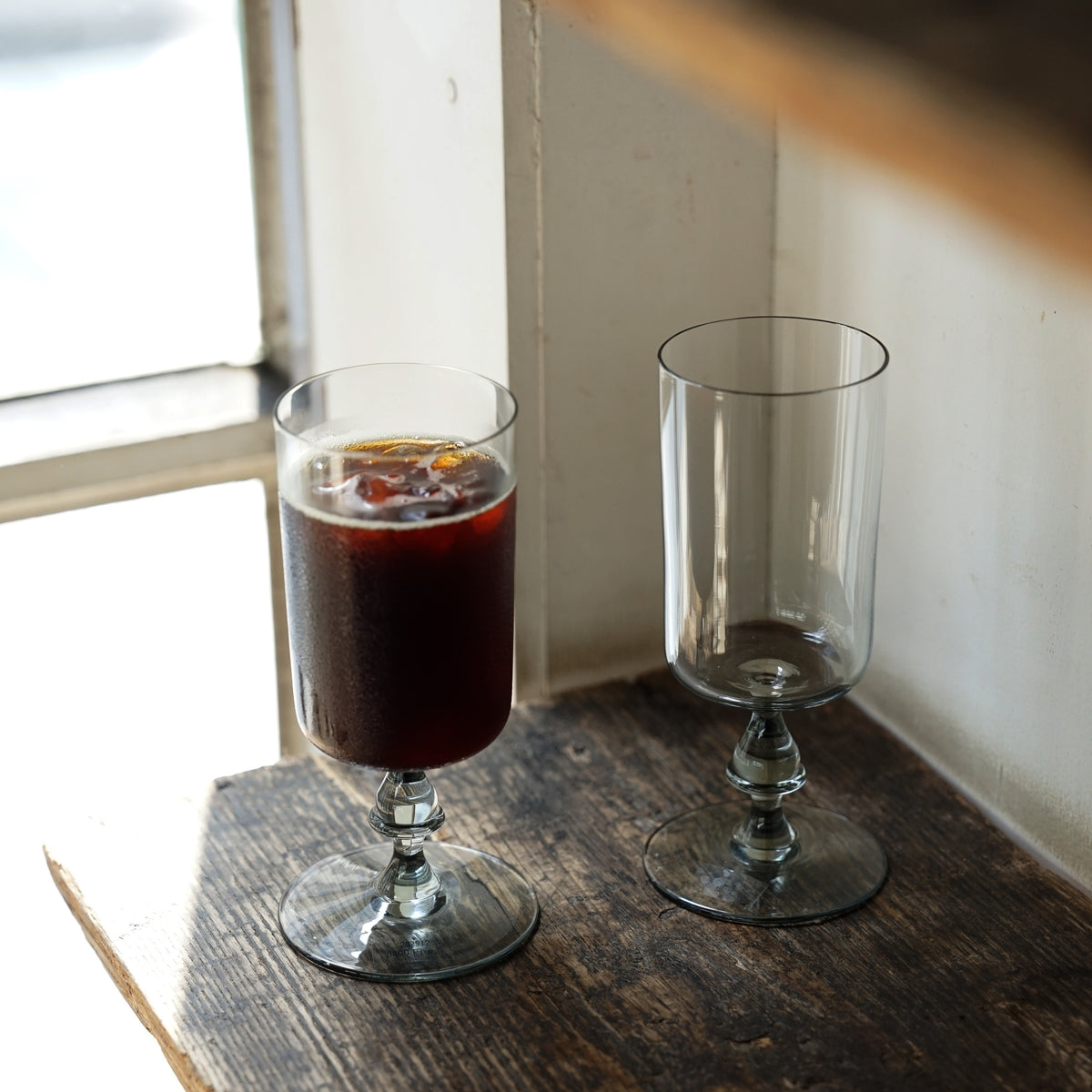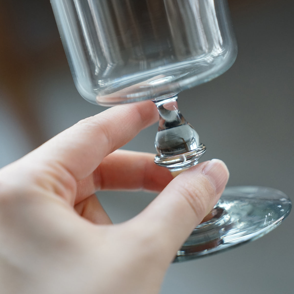 すとんとしたかたちと、しずくのようなステムのバランスが美しいグラス。