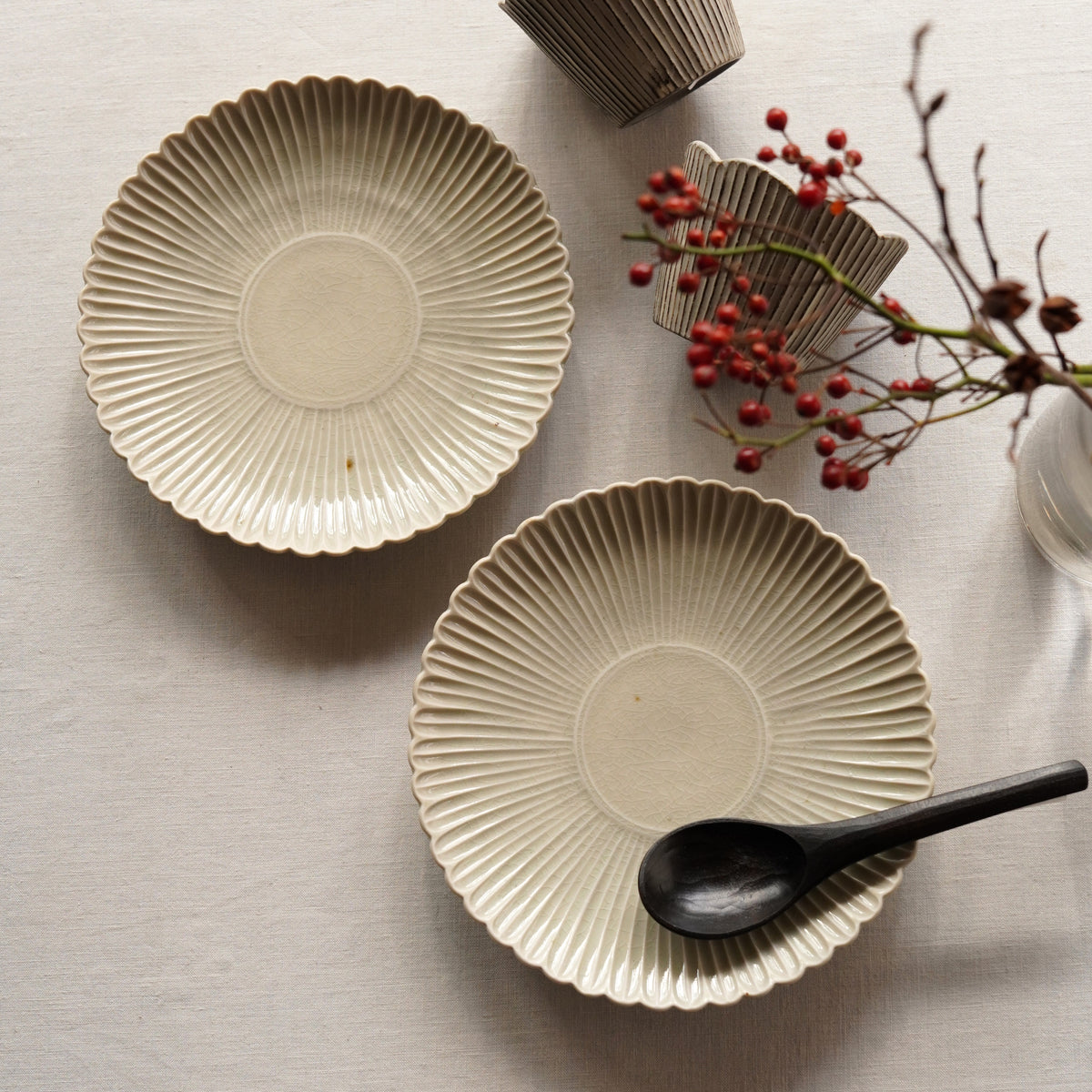 凛とした佇まいの白瓷は、漆器など和の食卓にも、洋の雰囲気にもよく合います。