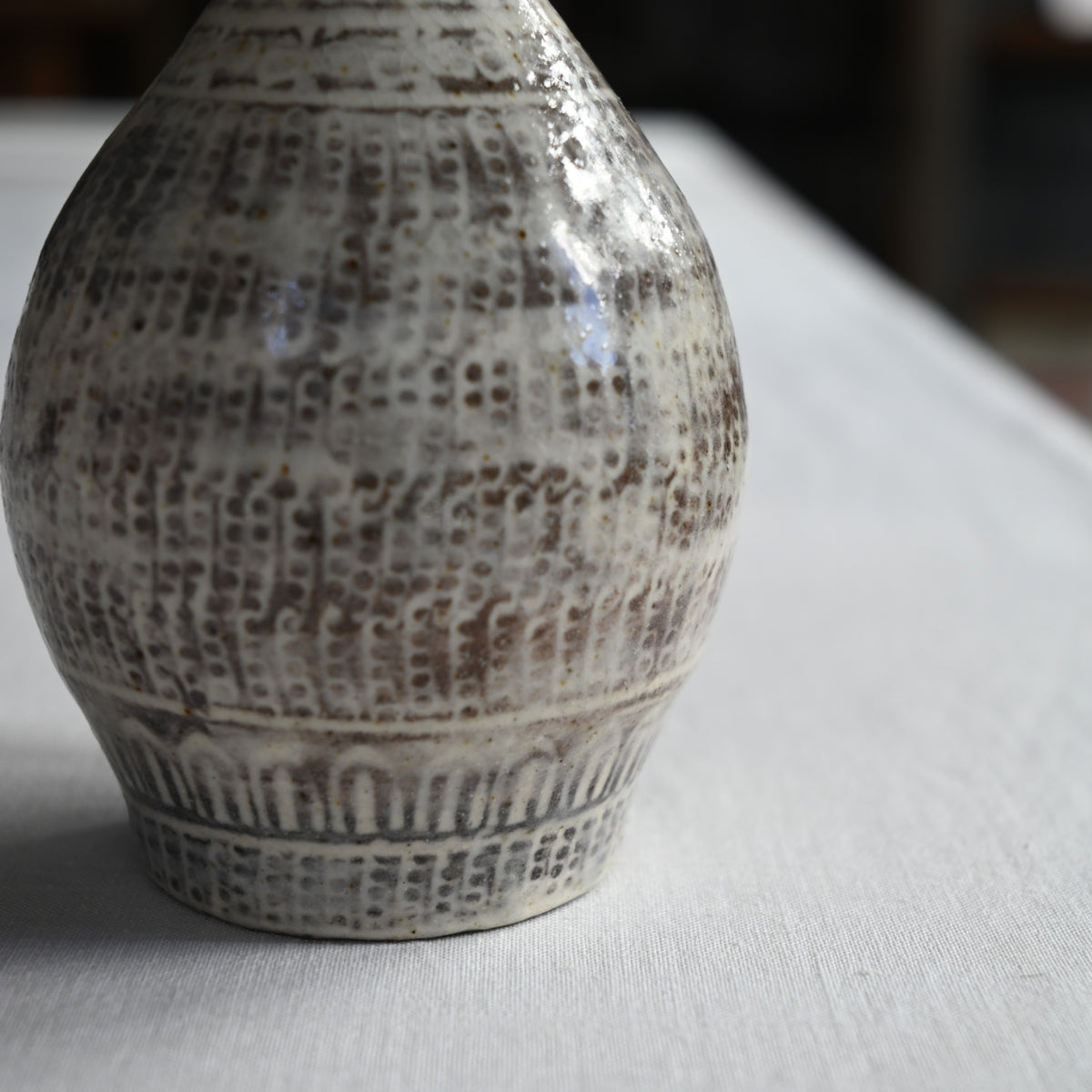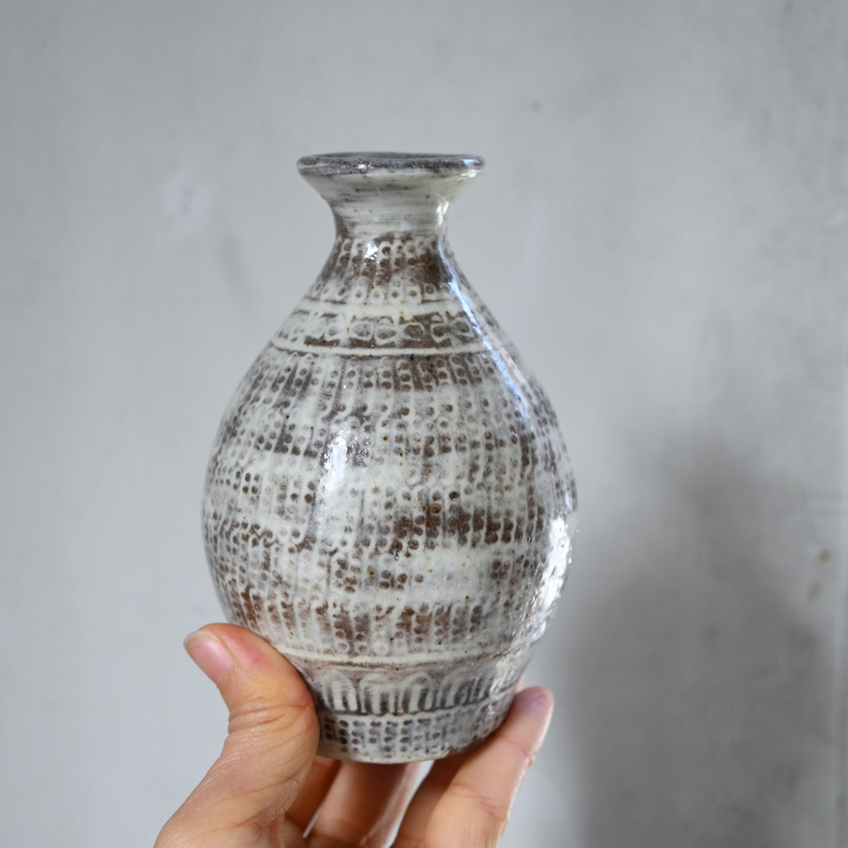 印判で模様を押して作る三島の徳利。