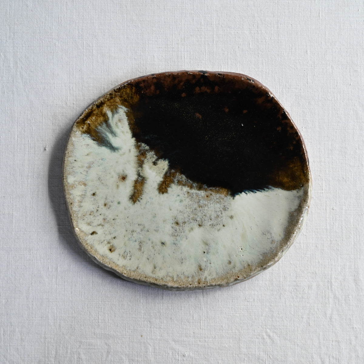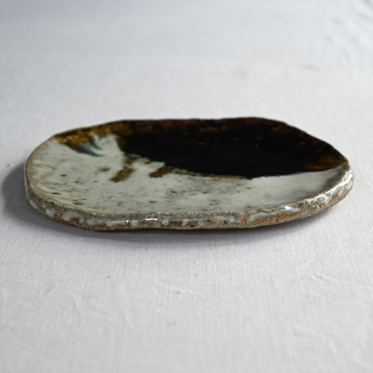 ゆるやかに流れる二色の釉薬に見応えのある楕円皿。