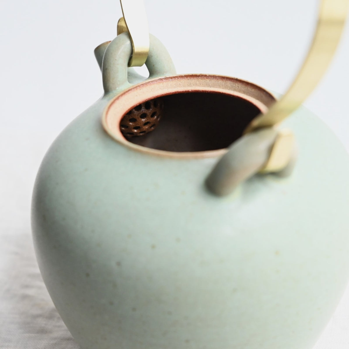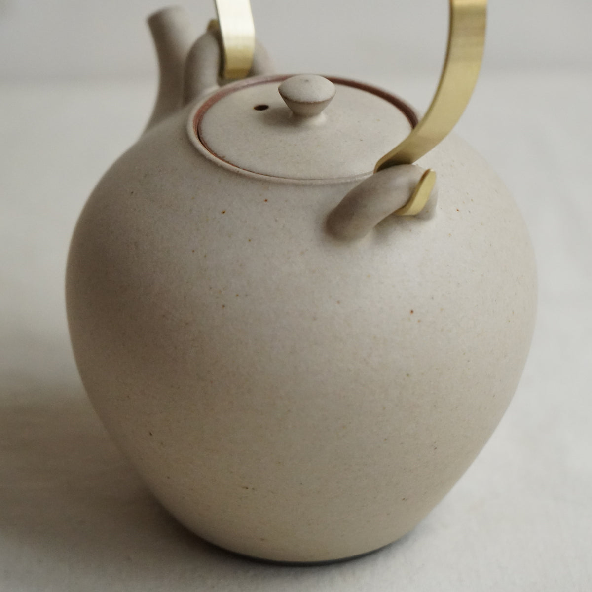すっきりとしたフォルムと切れのよい注ぎ口。真鍮部分は西村さんご自身で、手で曲げて作られています。経年していく様子もお楽しみください。