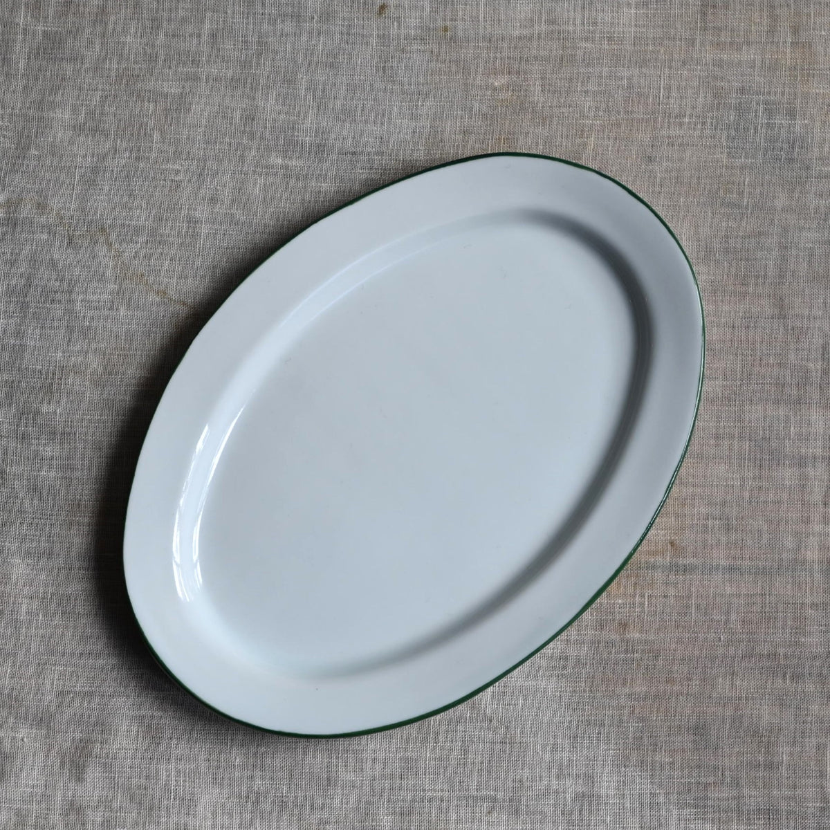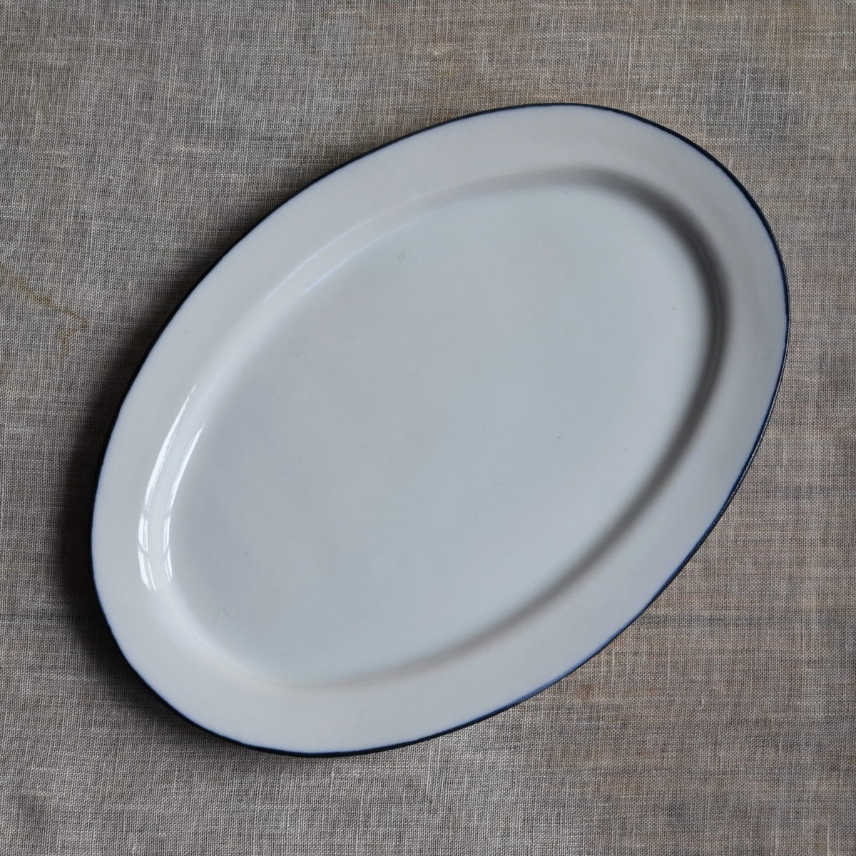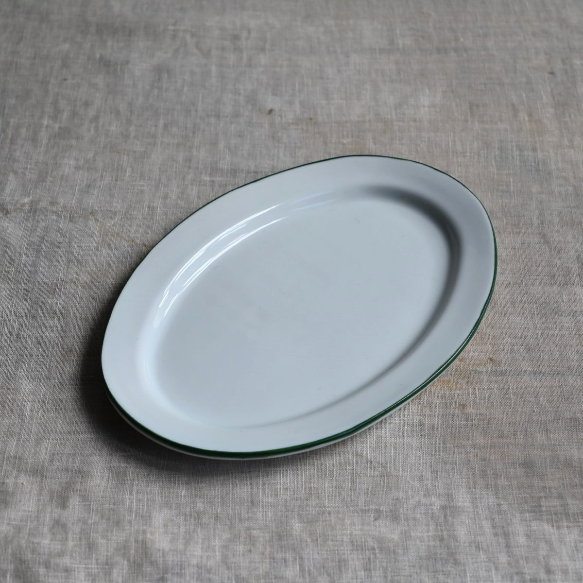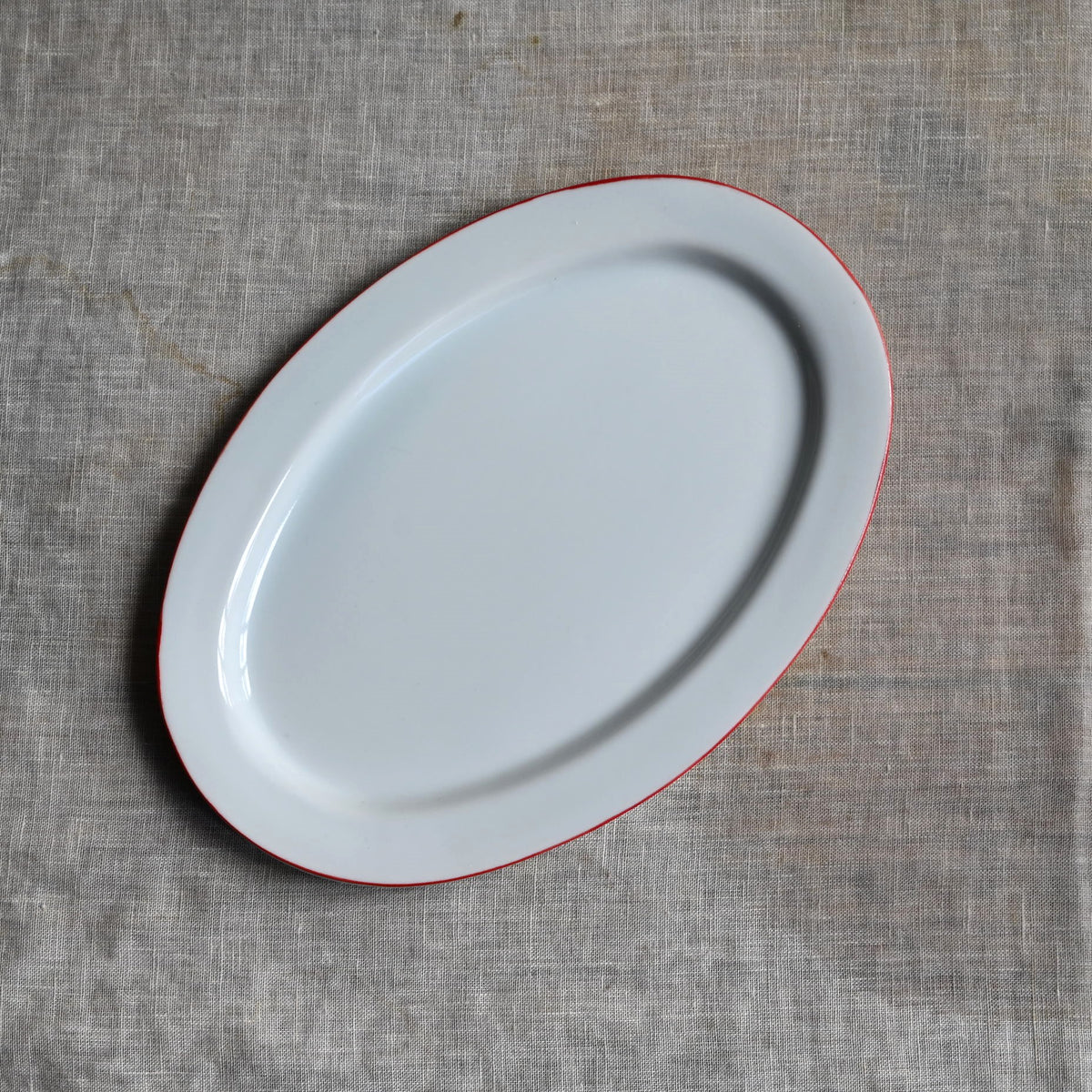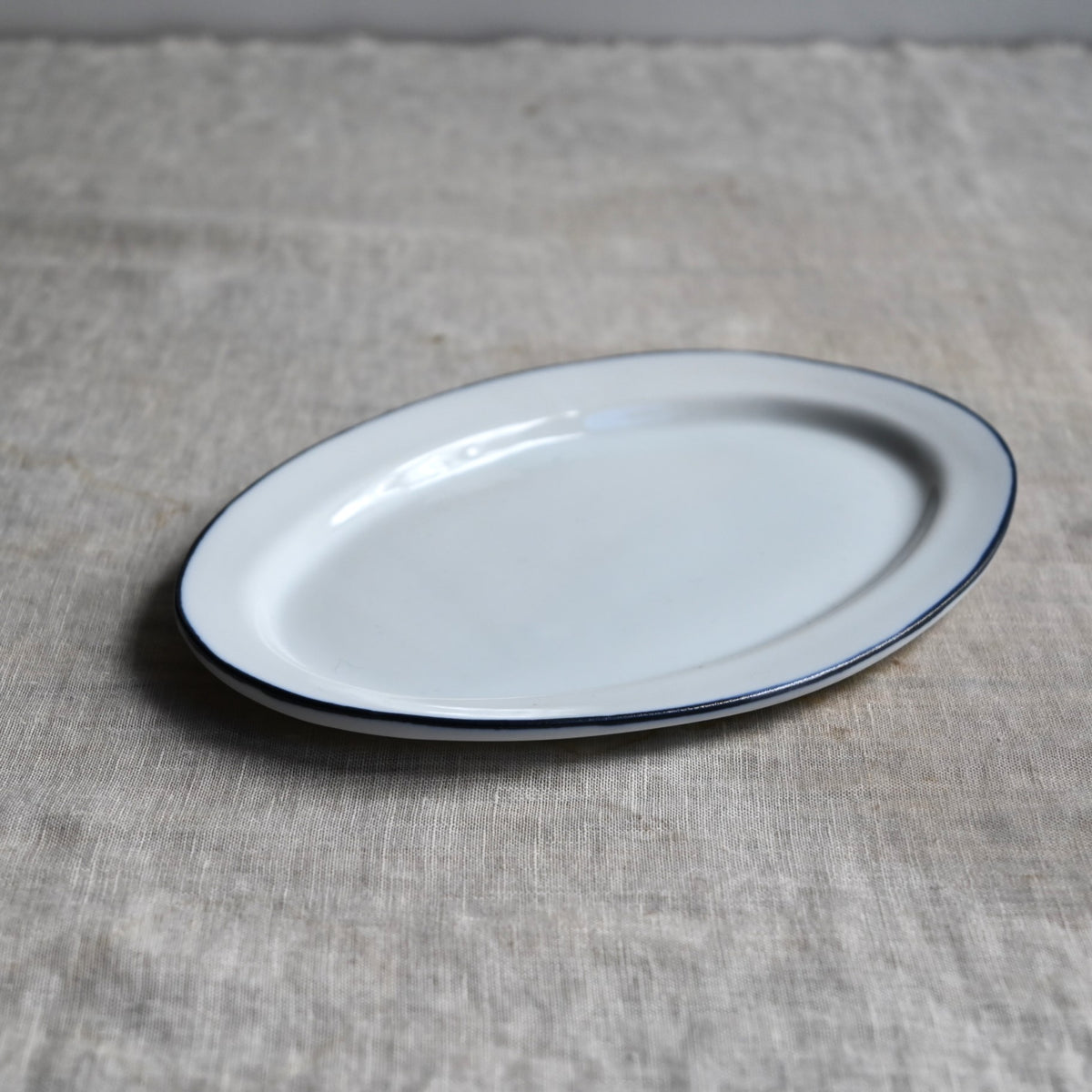 静岡県で制作される赤堀さん。琺瑯のような質感に、さりげないふちどりの色がアクセントに。懐かしさもありながら、すっきりとしたかたちは洗練された雰囲気。日々の食卓に新しい風を吹かせてくれるような器です。