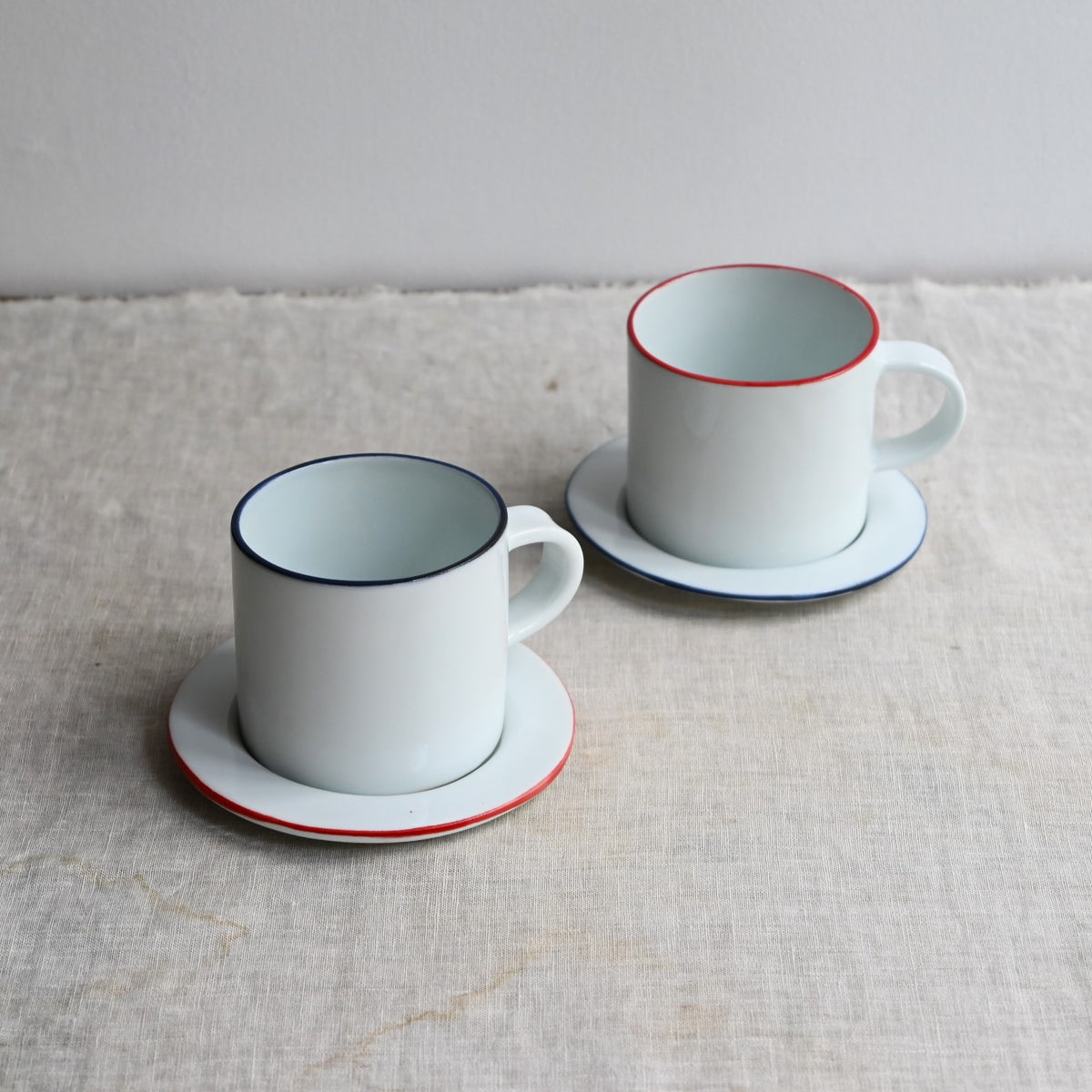 静岡県で制作される赤堀さん。琺瑯のような質感に、さりげないふちどりの色がアクセントに。懐かしさもありながら、すっきりとしたかたちは洗練された雰囲気。日々の食卓に新しい風を吹かせてくれるような器です。