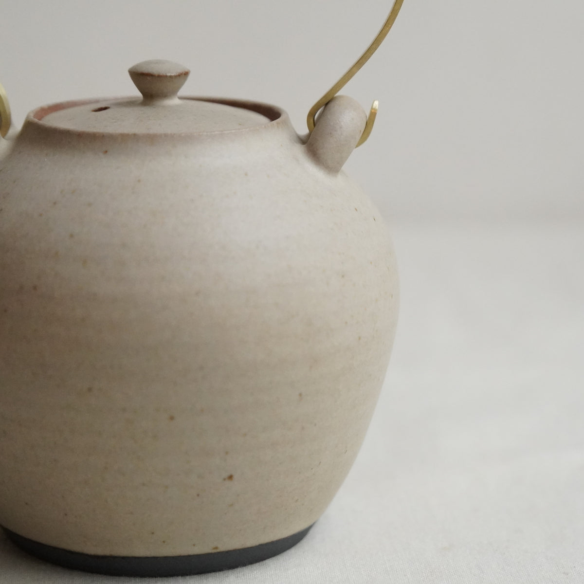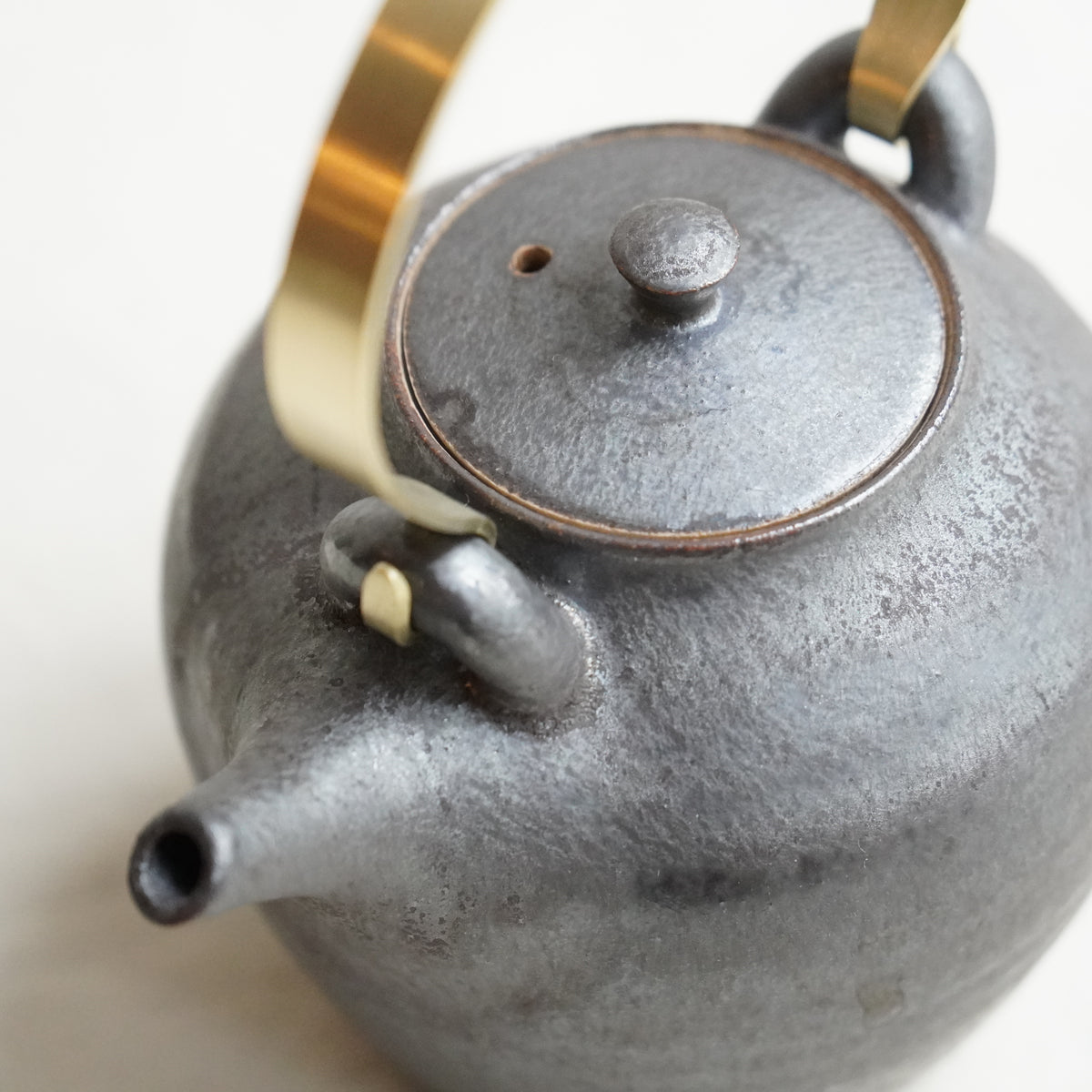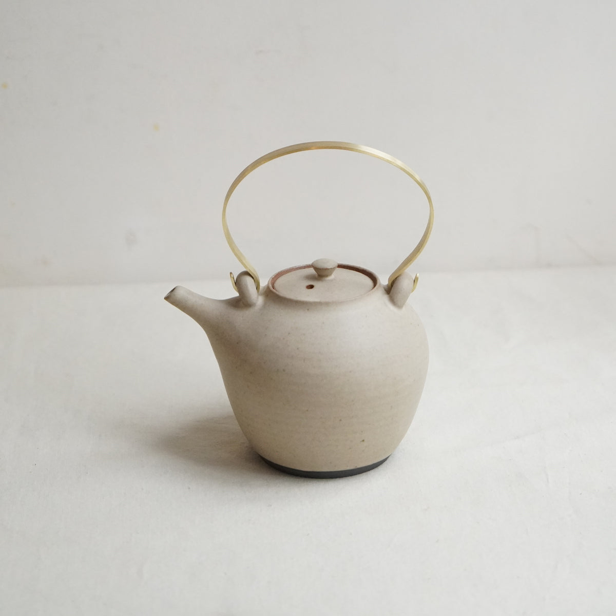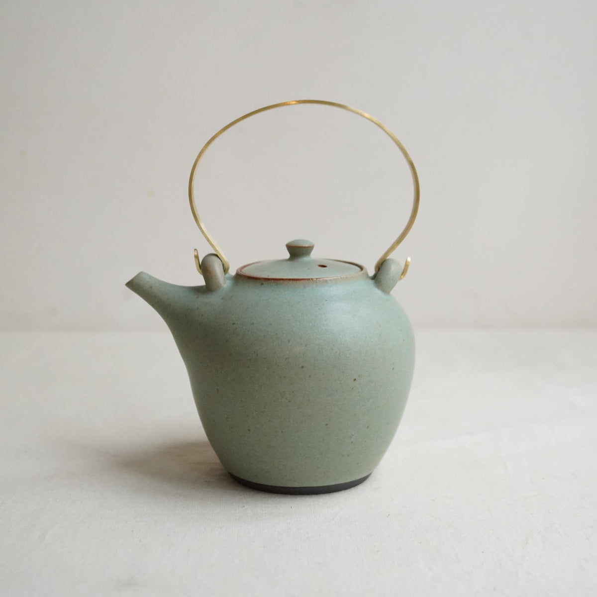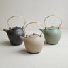 白、緑、黒の三色展開。すっきりとしたフォルムと切れのよい注ぎ口。真鍮部分は西村さんご自身で、手で曲げて作られています。経年していく様子もお楽しみください。