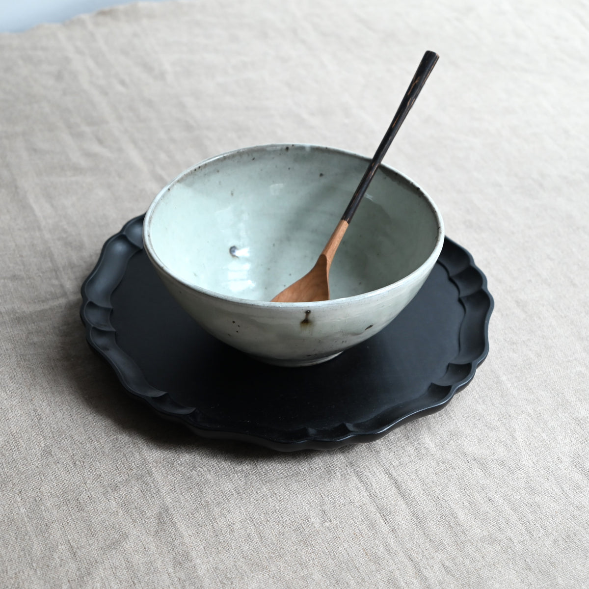 どっしりとして大らかな器を作る松原さん。常滑時代は粉引を中心とした作風で、現在はさまざまな手法にもチャレンジされています。スリップの技法で作られた器も、ゆったりとした大らかさが感じられます。耐火の器はお料理の幅も広げてくれます。