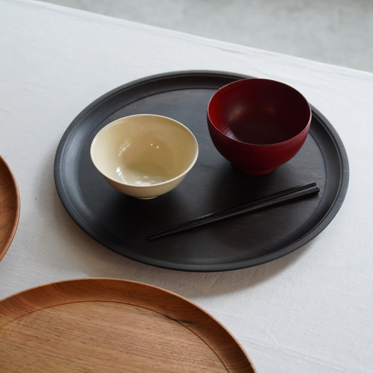 シンプルだからこそ、こだわりを感じられる會田さんの丸盆。