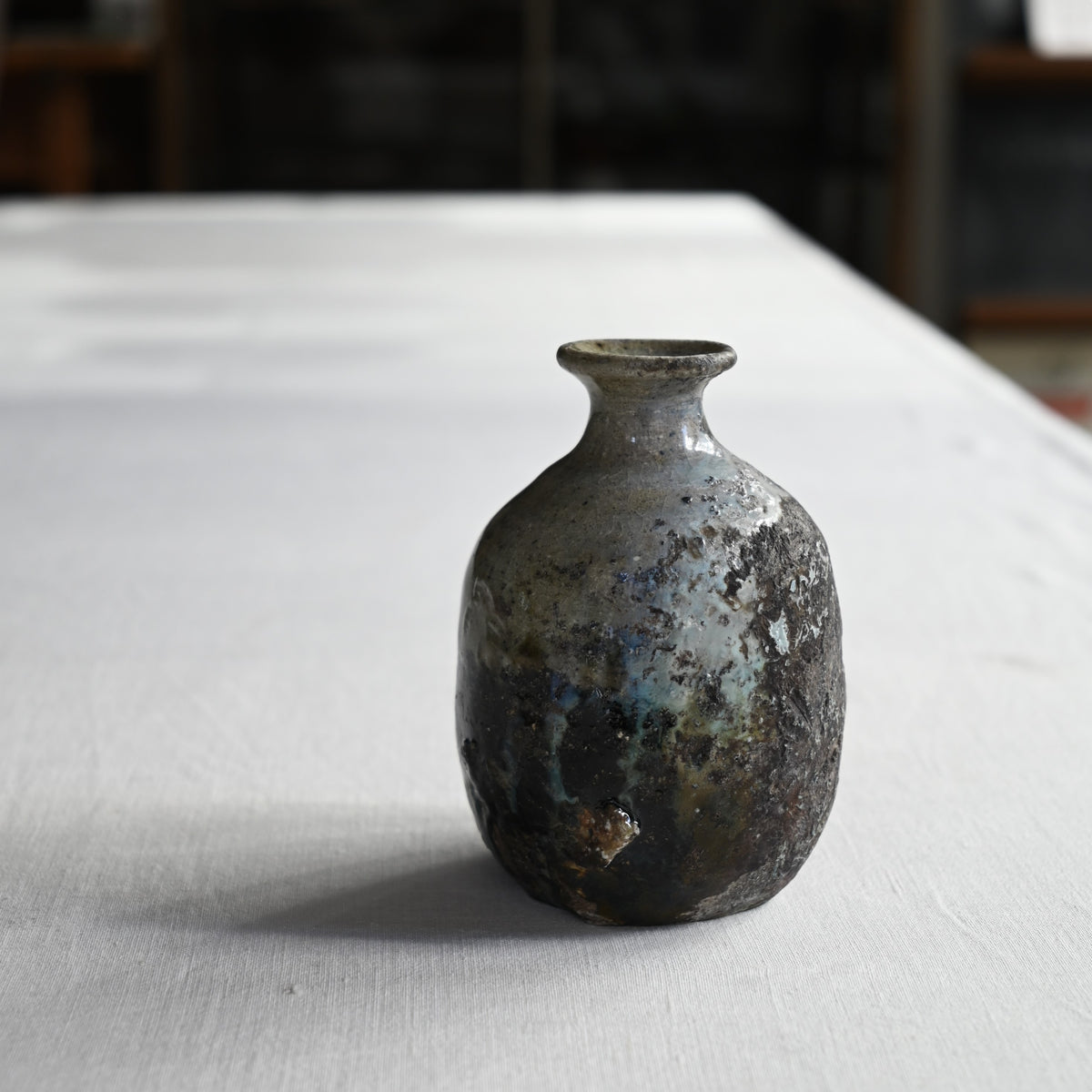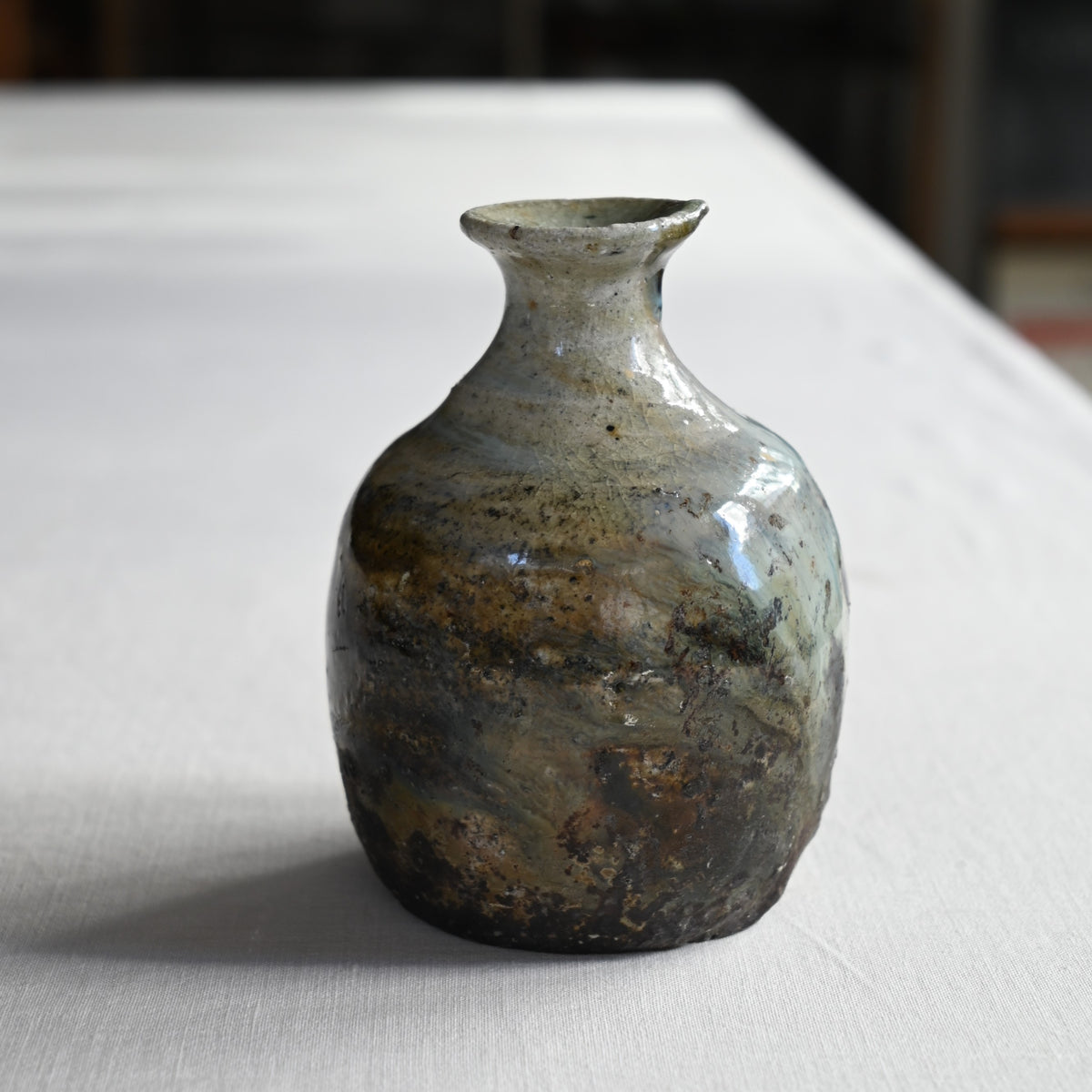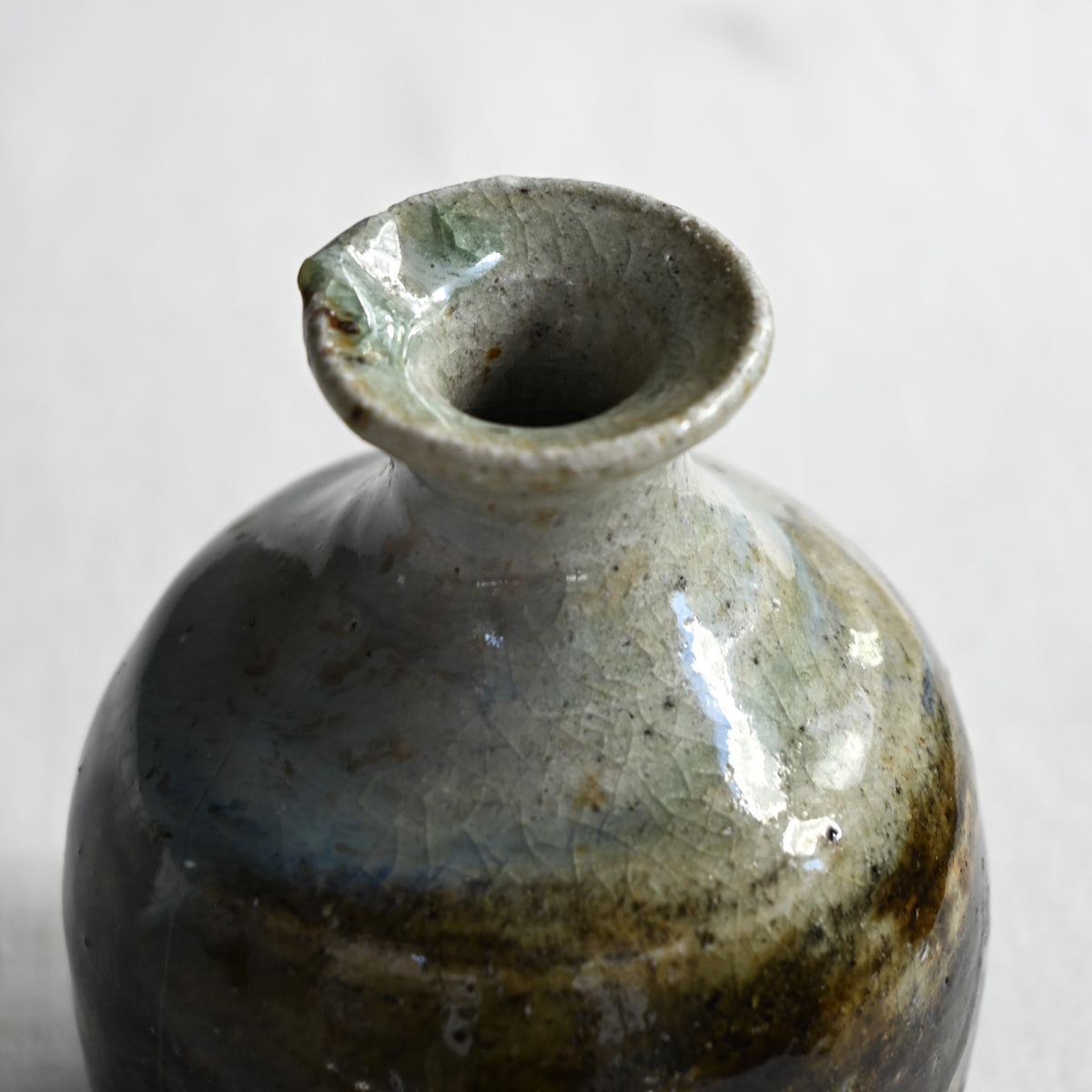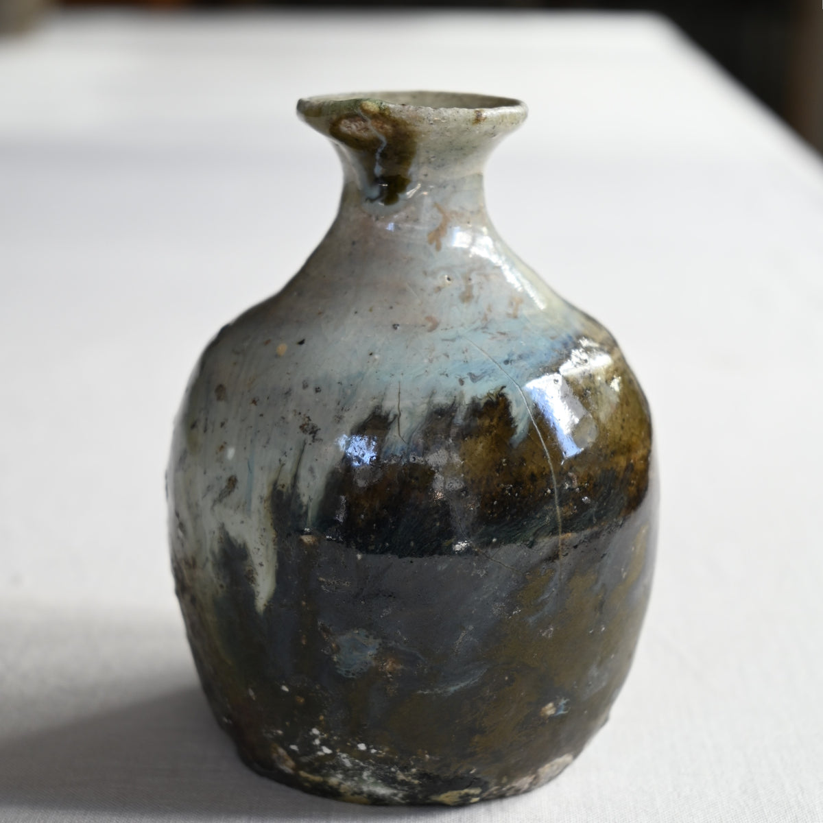 掛け分けられた釉薬がゆるやかに流れる朝鮮徳利。
