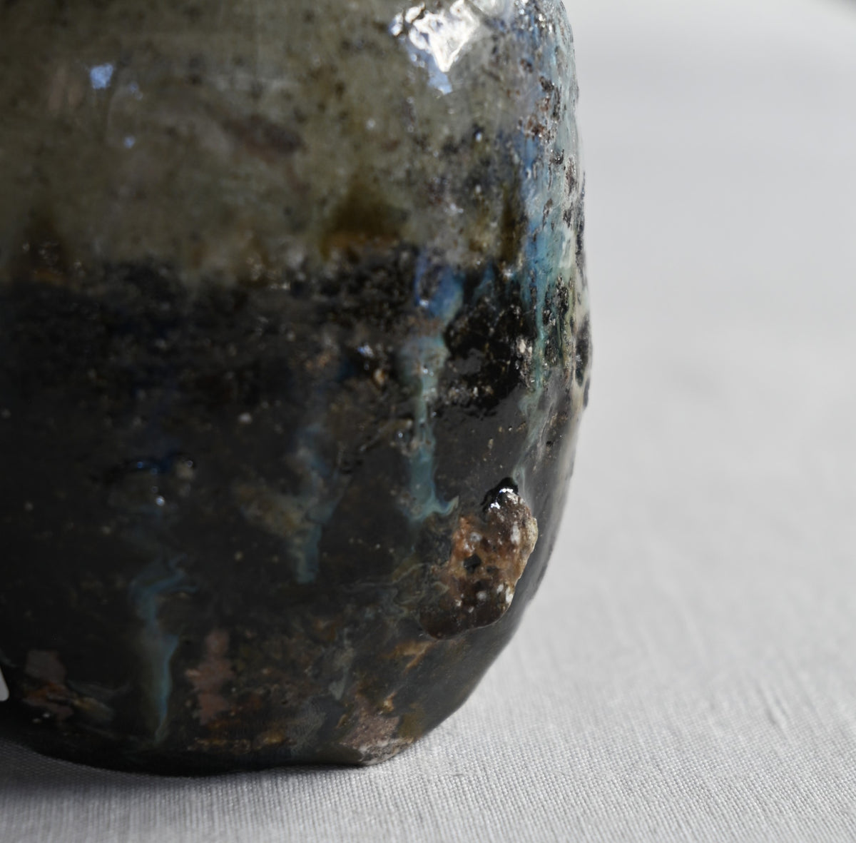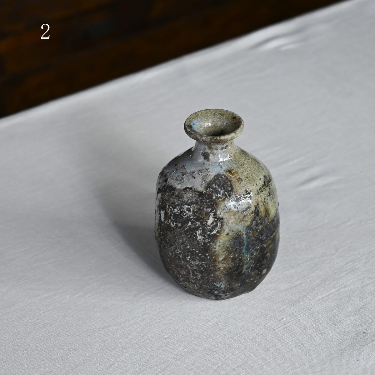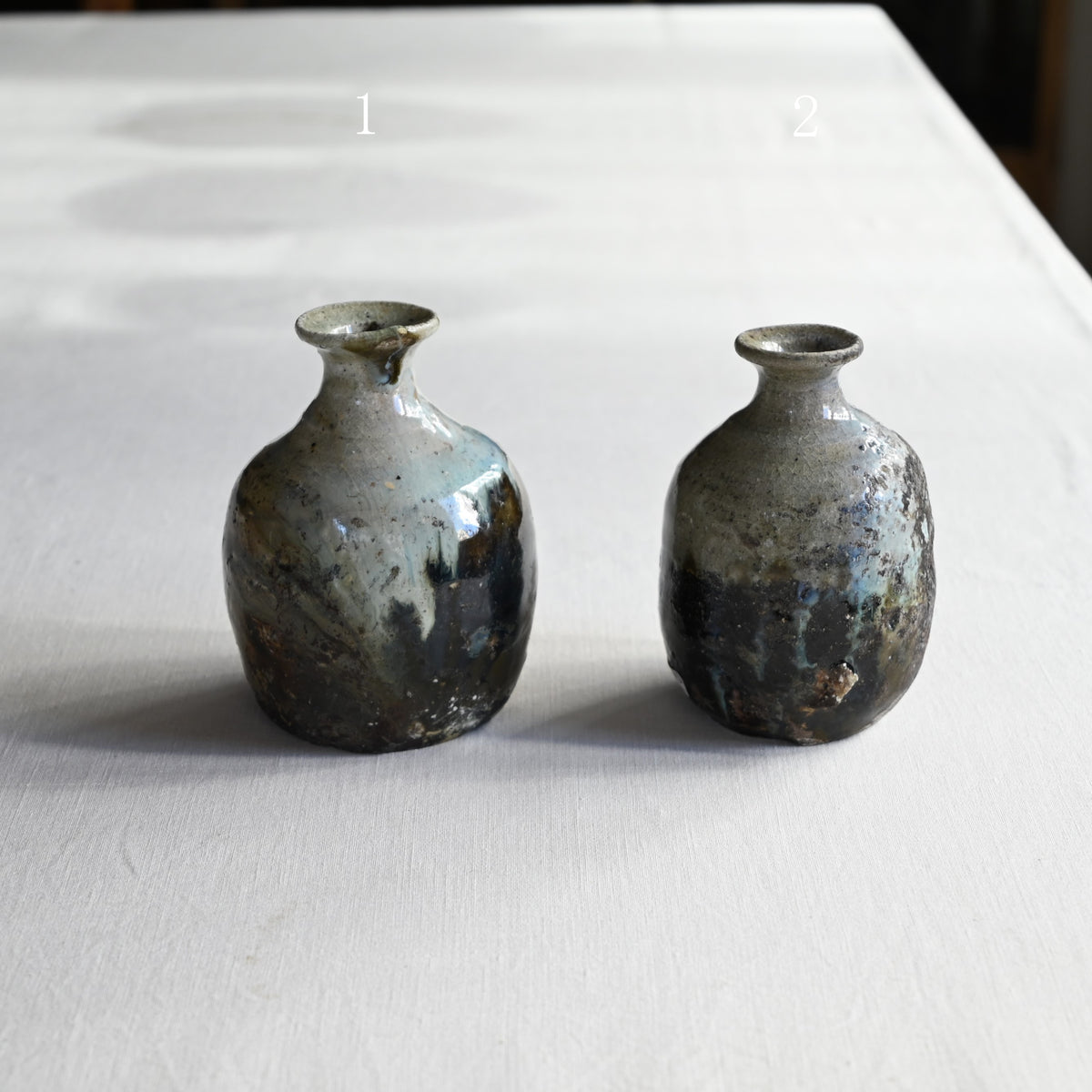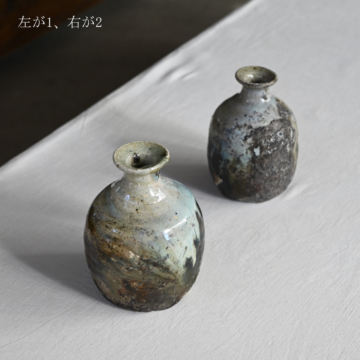 掛け分けられた釉薬がゆるやかに流れる朝鮮徳利。