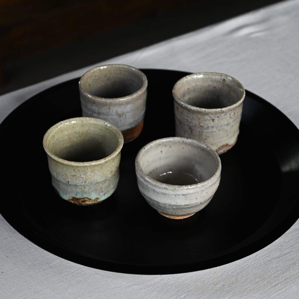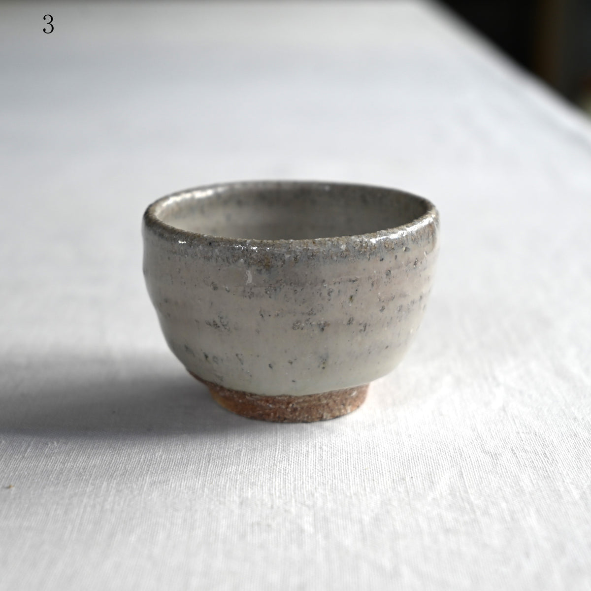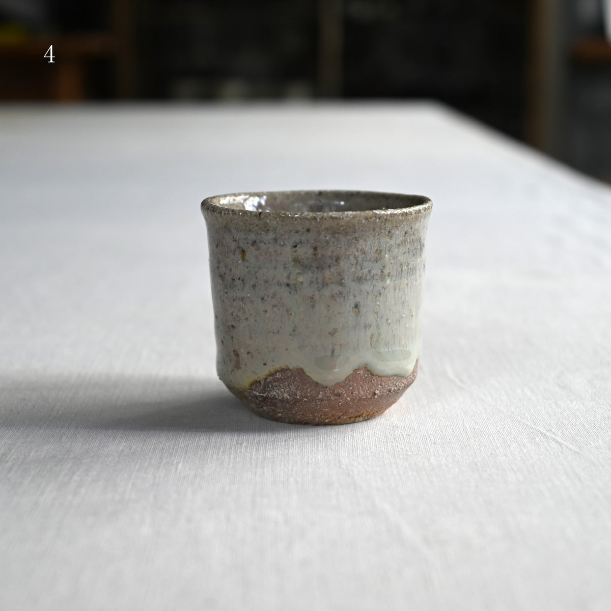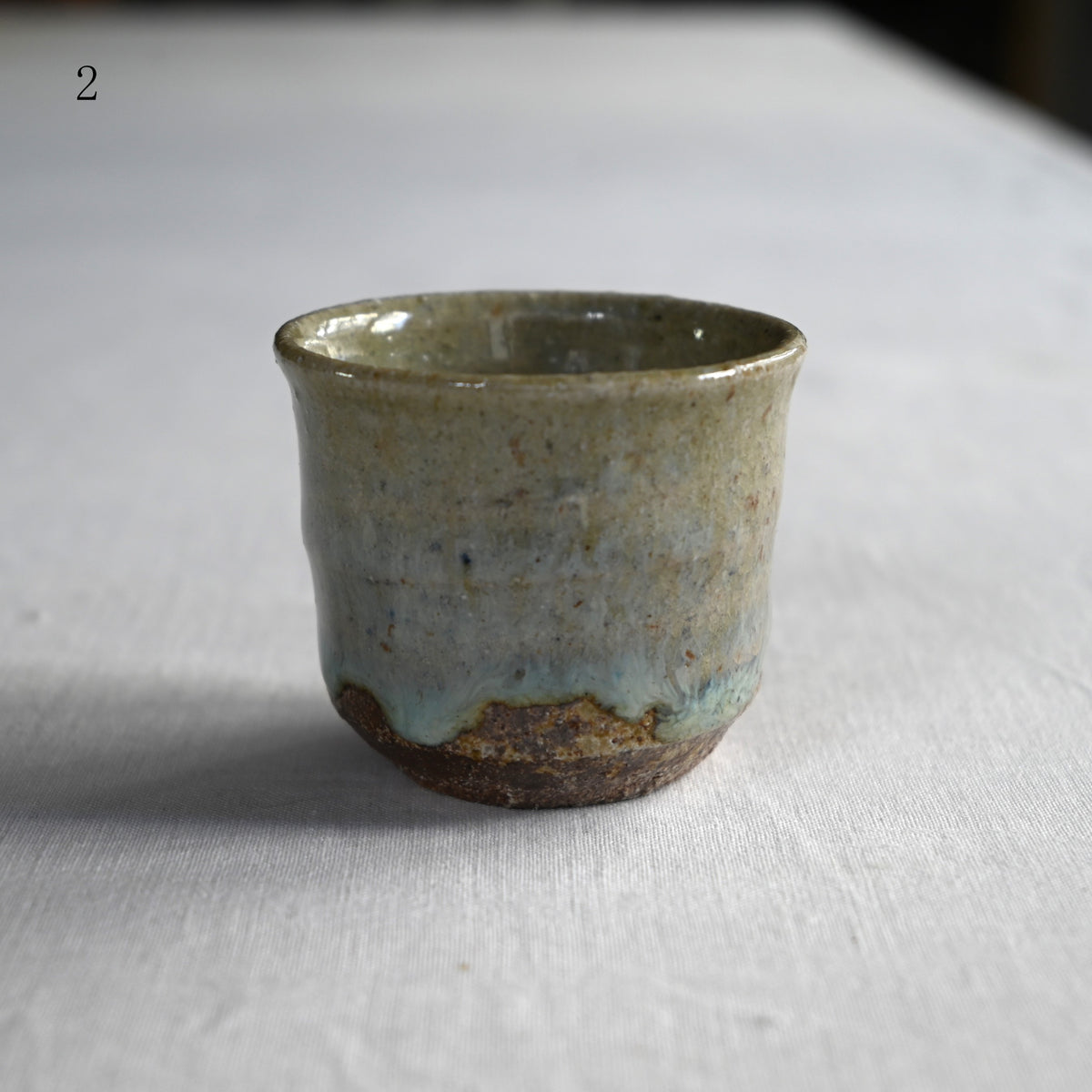 生地と釉薬のコントラストに温かみが感じられ、青みがかった内側が美しい斑ぐい吞み。