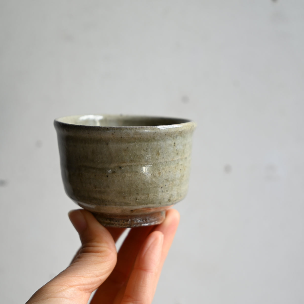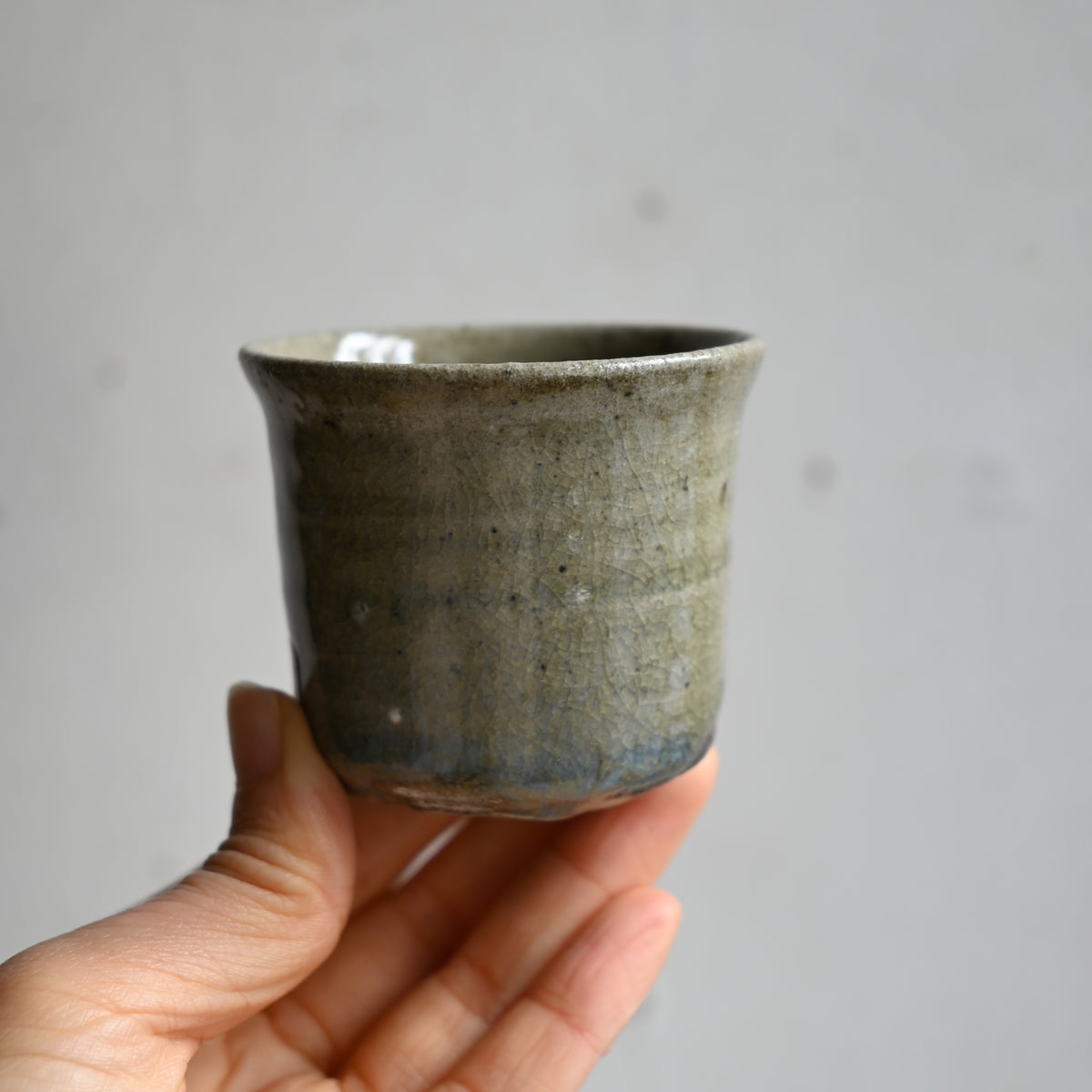 ほんのりと青みがかった表情のぐい吞み。