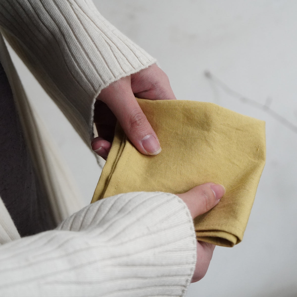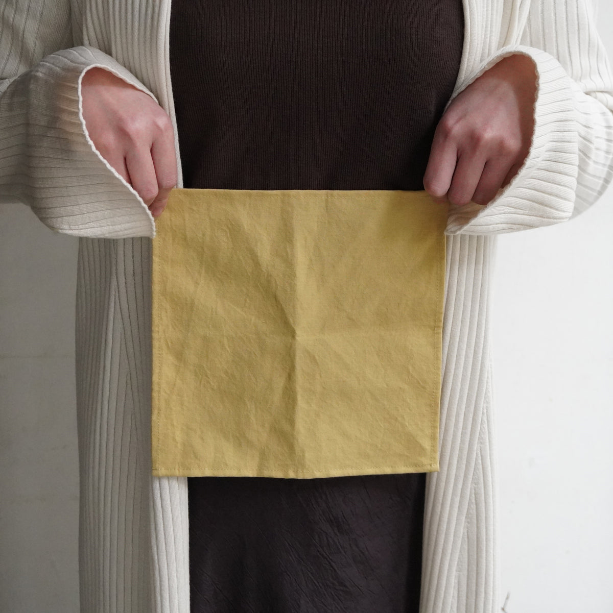 ハンカチとしてはもちろん、折ってコースターにしたり、うつわに合わせて食卓に彩りを添えたり、様々な使い方をお楽しみください。