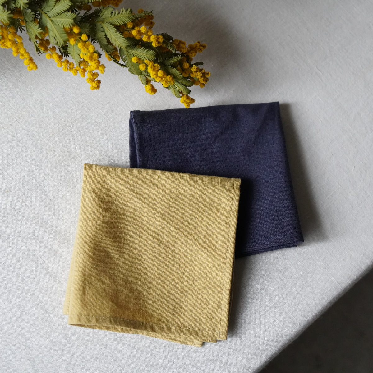 紺と黄色2つの色のミニハンカチ。