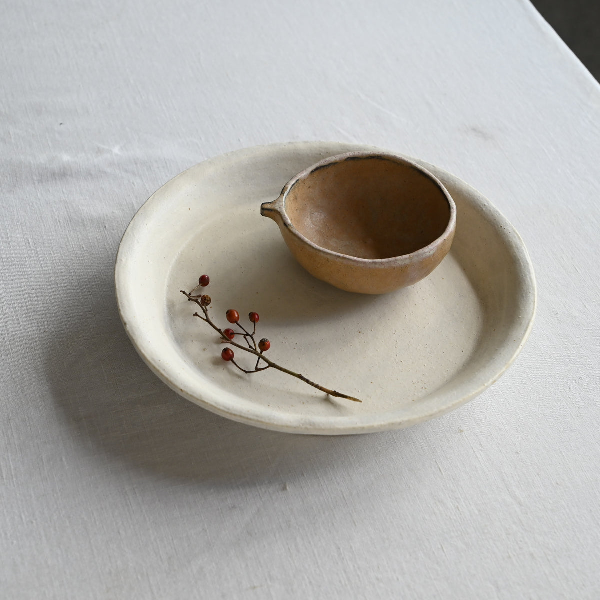 福岡県で作陶。手で形を仕上げる手びねりという方法で作られた器は、色、形、1つ1つ緩やかに変化した表情が魅力です。