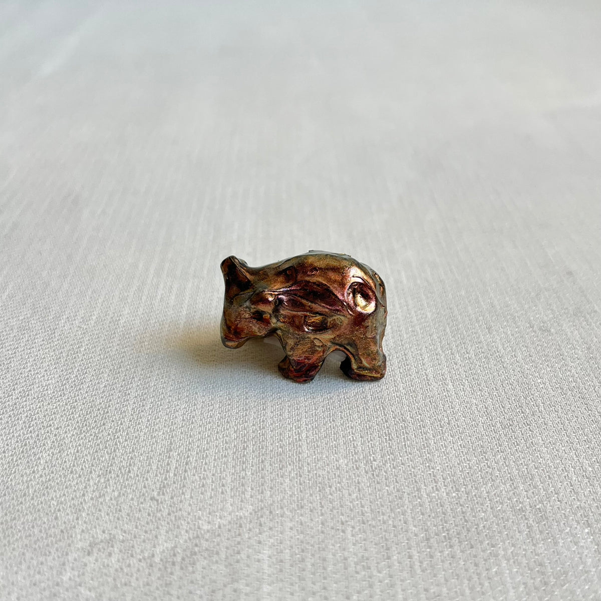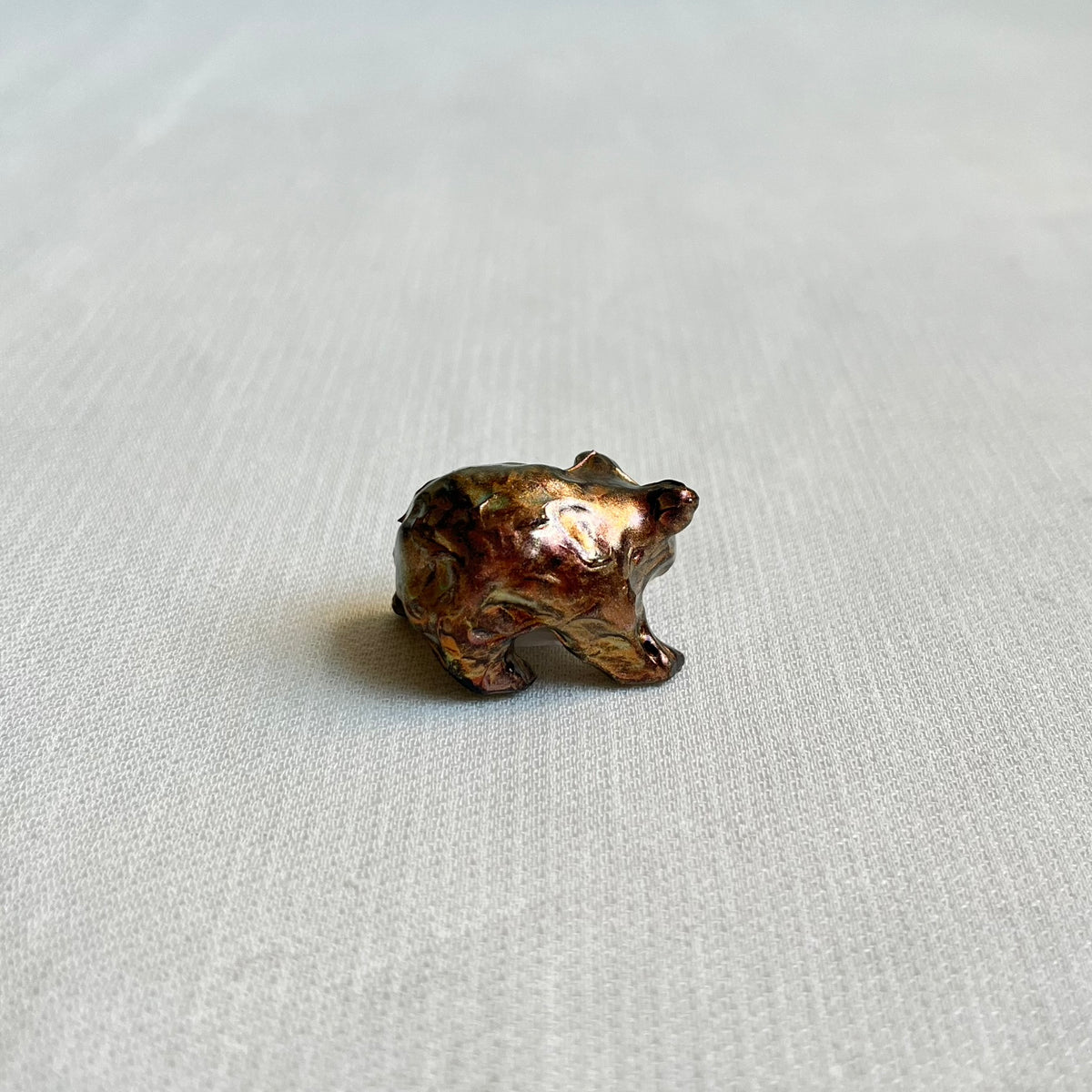 木彫りの熊にアクリル絵の具を塗り重ねて描いた作品。